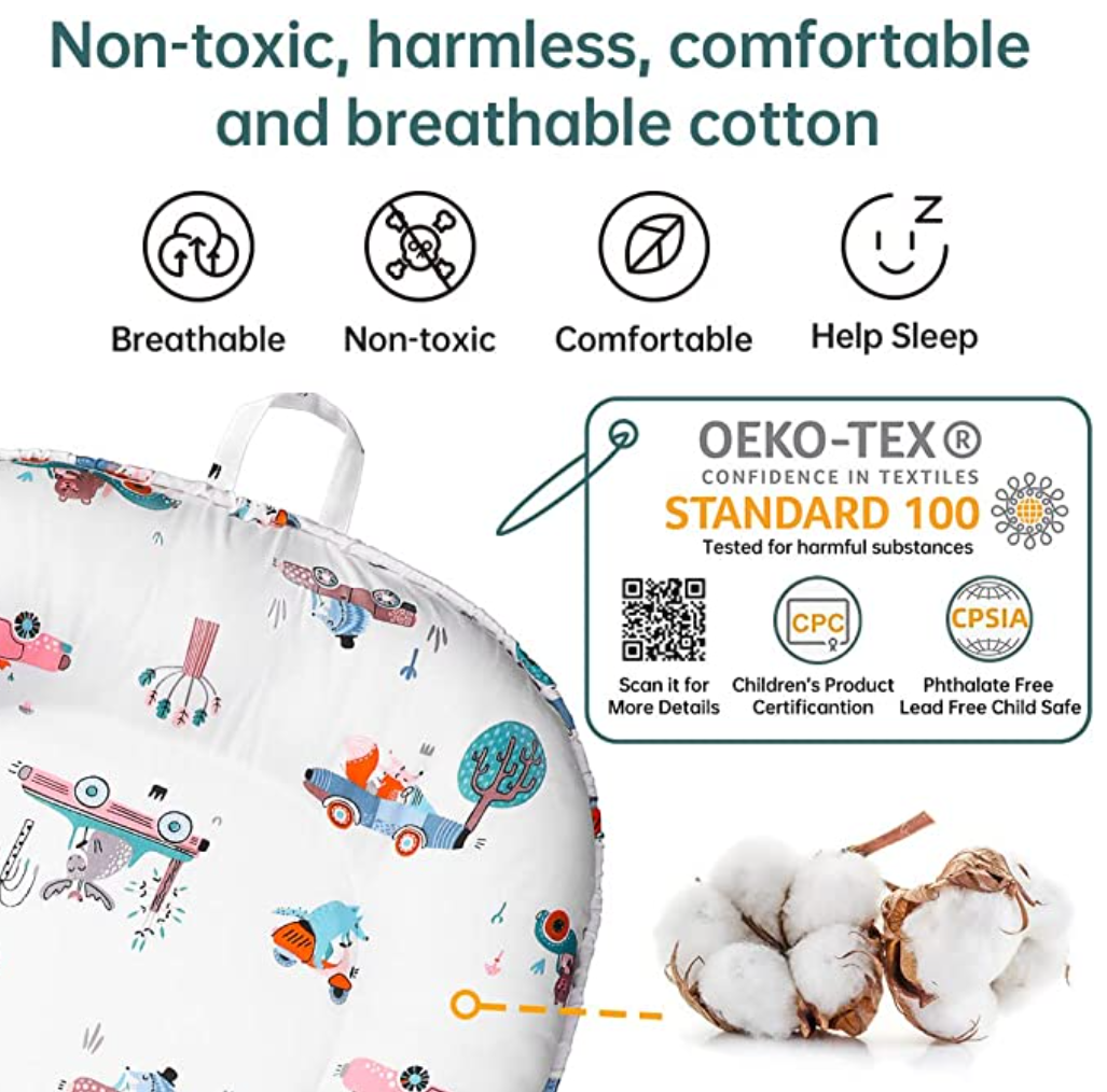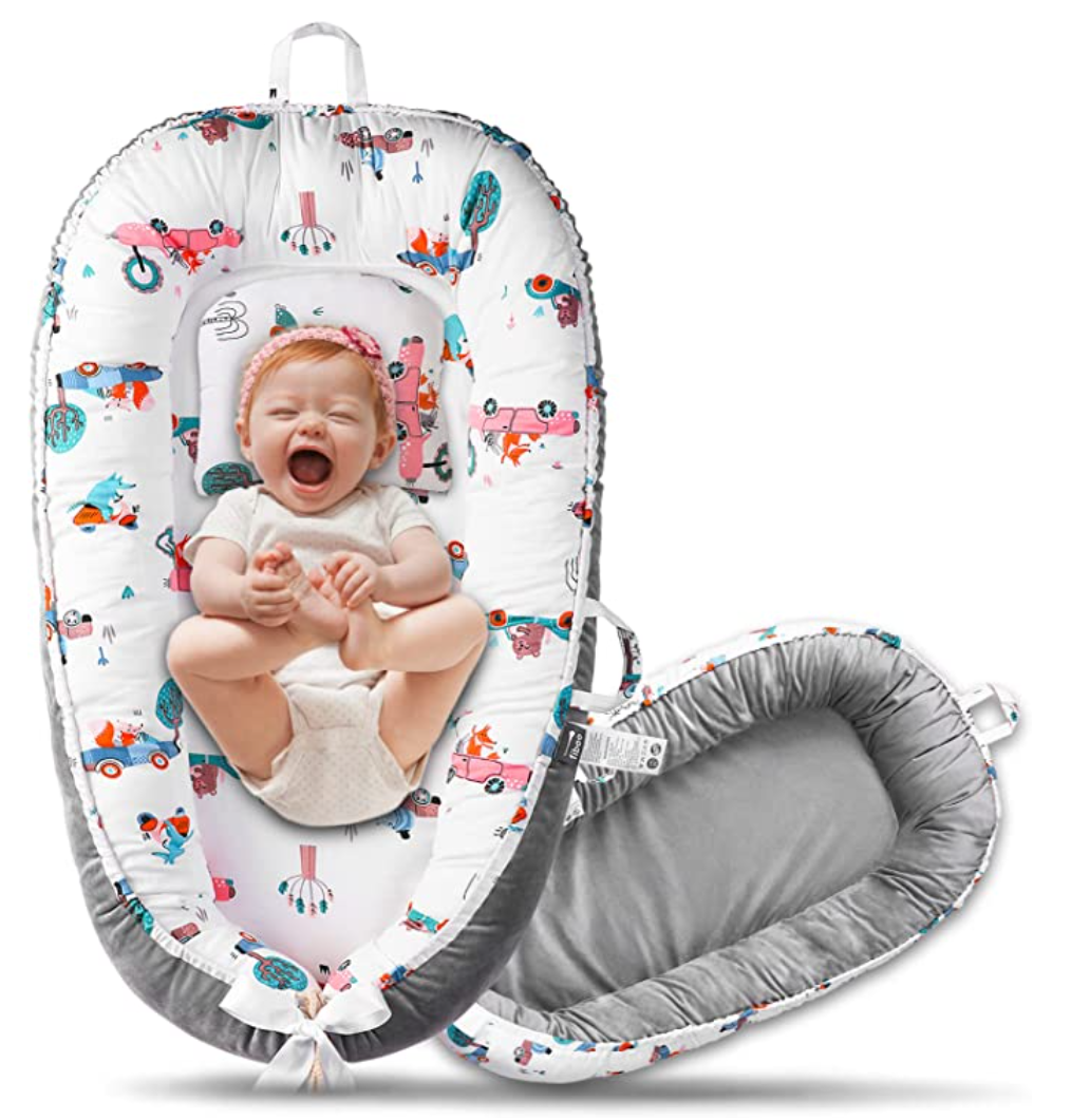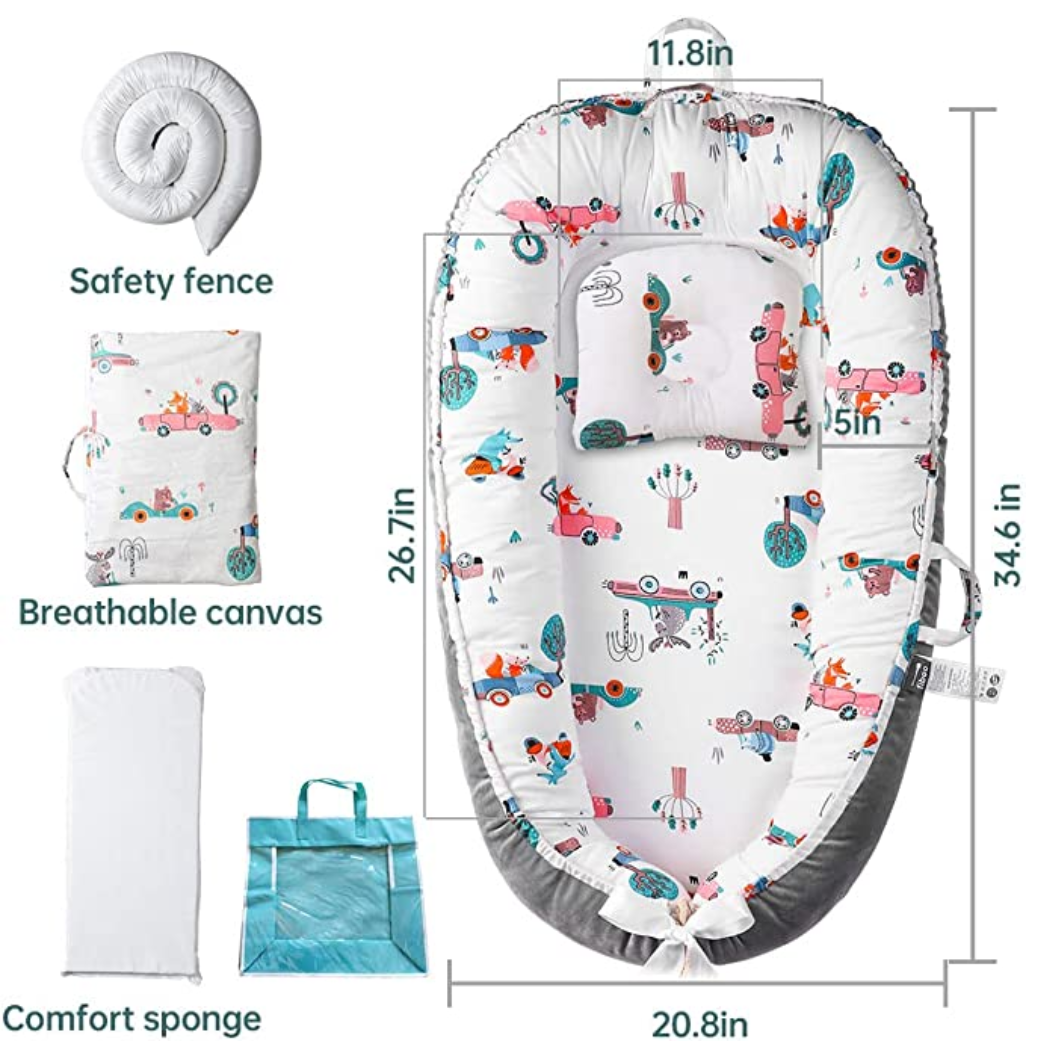 Fiboo Baby Lounger Baby Litter Cozy, 100% Soft and Breathable Newborn Recliner Portable Adjustable Double Sided Configuration Storage Bag Baby Crib Cradle Cradle Comfort Bed Travel Fit 0-12 Months Gre