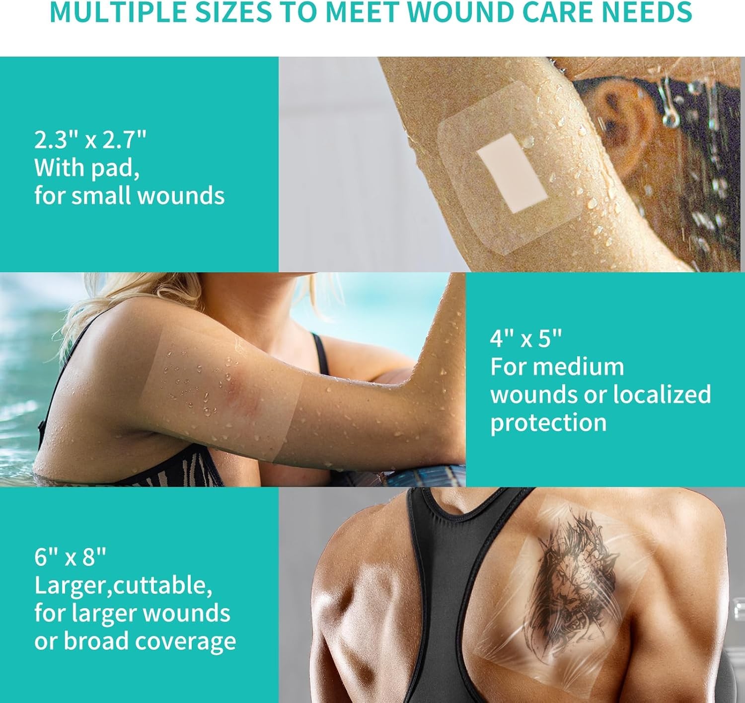 Dimora Transparent Film Dressing 50 Packs, Waterproof Adhesive Clear Bandages 4 in x 5 in, Wound Cover for IV Shield, Tattoo Aftercare Bandage,Clear Bandage Tape for Wound Care