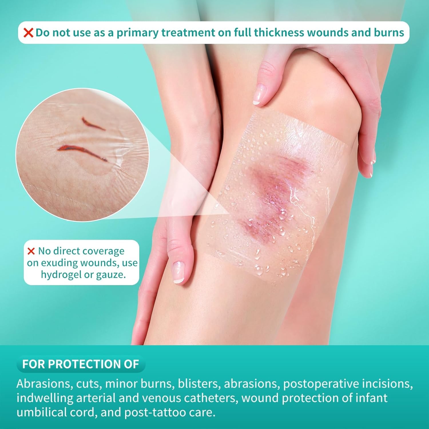 • Versatile Application: Not only as a medical fixation IV and non-adhesive dressing; but also as baby's belly button protection and tattoo aftercare Notice:Don't apply tranparent film dressing directly on open wound or wound with too much exduate, use with gauze or non-woven cloth, and peel off the dressing in a correct way to avoid tearing the wound again. If you encounter any problems while using, please contact customer service promptly