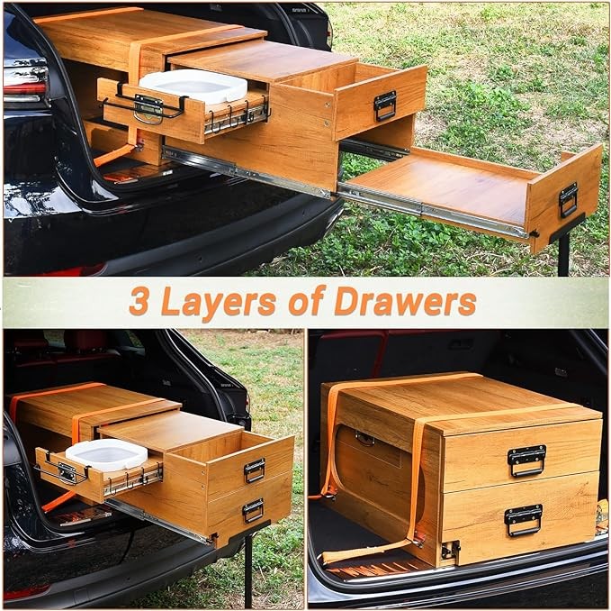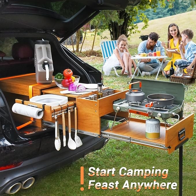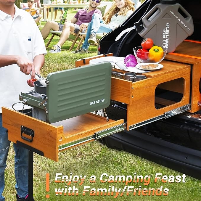 Suitable for burner camping stove, outdoor portable folding kitchen box with drawer, perfect for SUV/Truck/RV