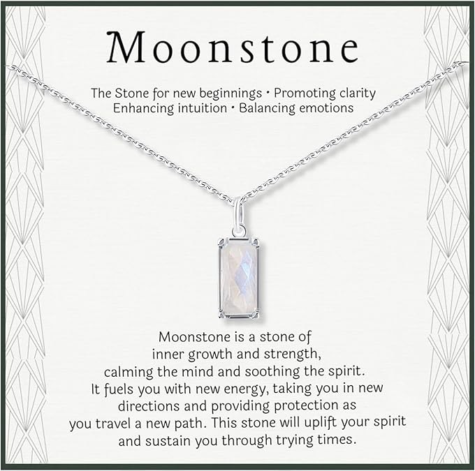 QUALITY MATERIALS: All the components of our new beginnings gifts are made with precious metal, for the precious woman in your life. Grade AB moonstone with sparkling rainbow sheen! Referred to as a “woman's healing stone”, it helps balance hormones and female cycles, promoting fertility. The sterling silver chain is 18” long with adjustable loop at 16”.