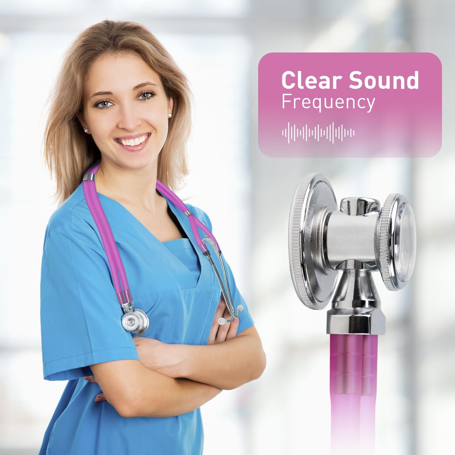 13 Pcs Stethoscope Case with Supplies: Comes with 1 pc pink case, 1 pc stethoscope, 1 pc nurse scissors, 1 pc neuro hammer, 1 pc buck hammer, 2 pc pupil gauge pen lights with two batteries each, 1 pc 4-colored ballpoint pen, 1 pc waterproof ID card holder, which are essential nurse tools and provide everything you need for daily work