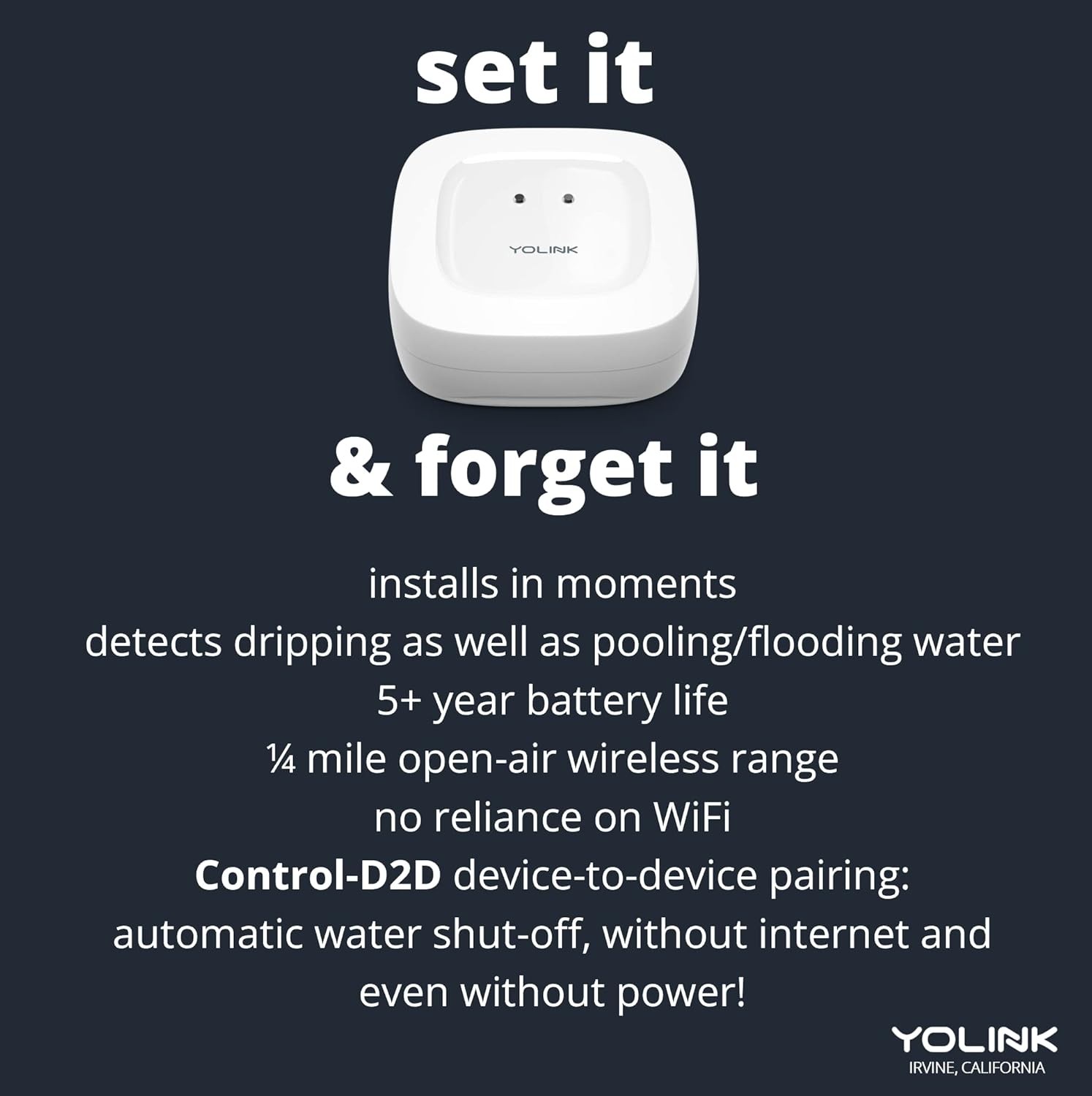 • SET IT & FORGET IT! Installs in seconds! The YoLink wireless Water Sensor could not be easier to install; just place near or under the equipment you wish to monitor. Suggested uses are near or under, toilets, water heaters, laundry machines, dishwashers, sinks, fish tanks, in or near sump pumps, and by any other location subject to water leaks and flooding.