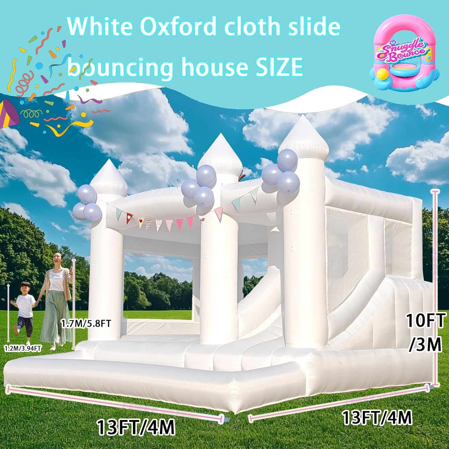 13FT White Bounce House Castle with Ball Pits and Slides Bounce House for Big Kids Thickening Oxford Inflatable Bounce House Inflatable Party Supplies/Holiday Decorations(Including Blower)
