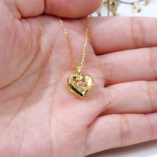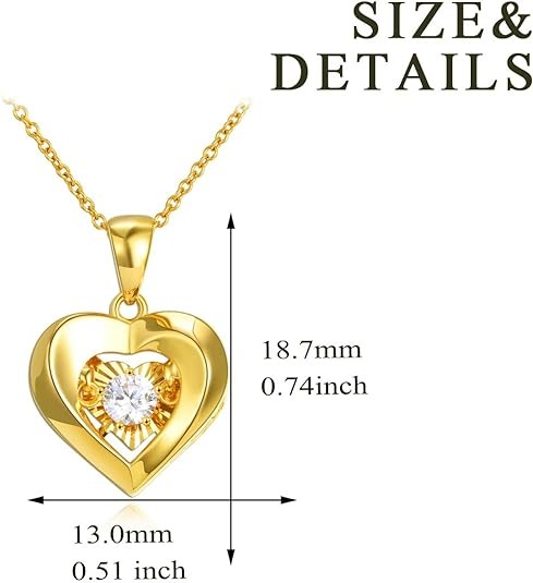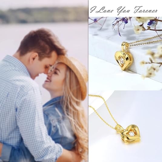 【Design】Delicate heart-shaped pendant, decorated with bright dancing CZ stones and a small diamond-cut heart, this lifetime gold jewelry necklace means: Eternal love between you and her.