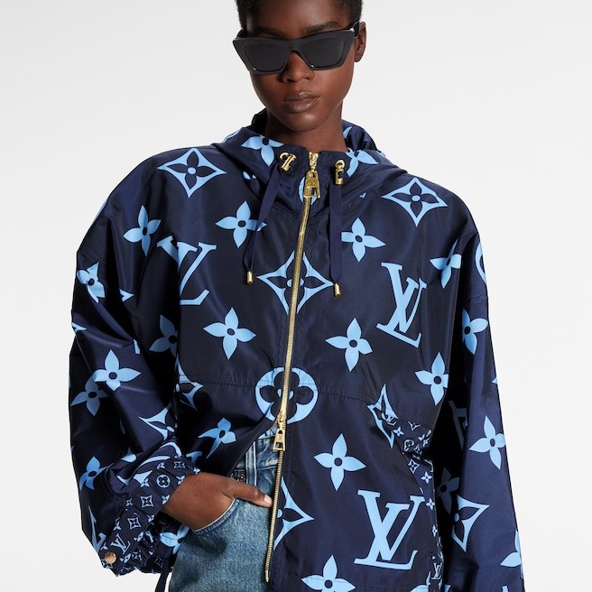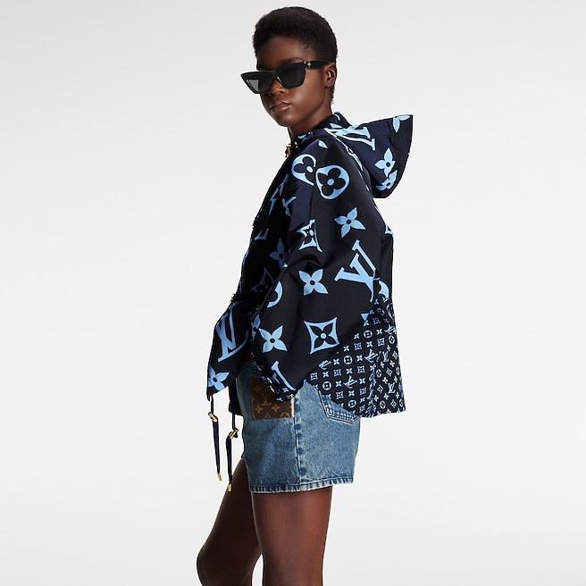 A graphic play of mini and maxi Monogram motifs forms the iconic print on this short parka. Cut in the House’s signature boxy shape from unlined nylon for a fresh, sporty look. Elasticated cuffs and a drawstring around the hood emphasize the volume, while a contrasting exposed zipper pops against the seasonal midnight blue palette.