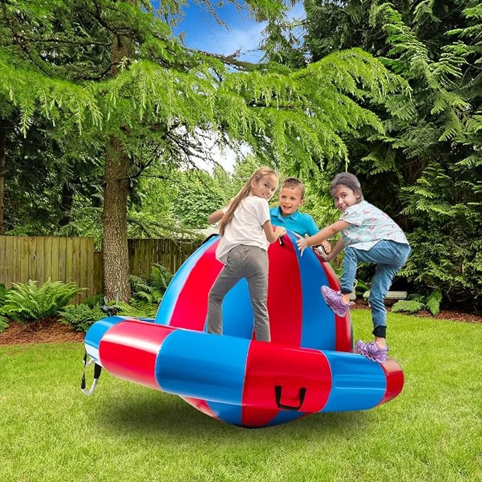 Giant Roll and Play Rocker with 8 Handles, Maximum Weight 600 lbs, Outdoor Toy with Electric Pump, Inflatable Rocker for Up to 4 People