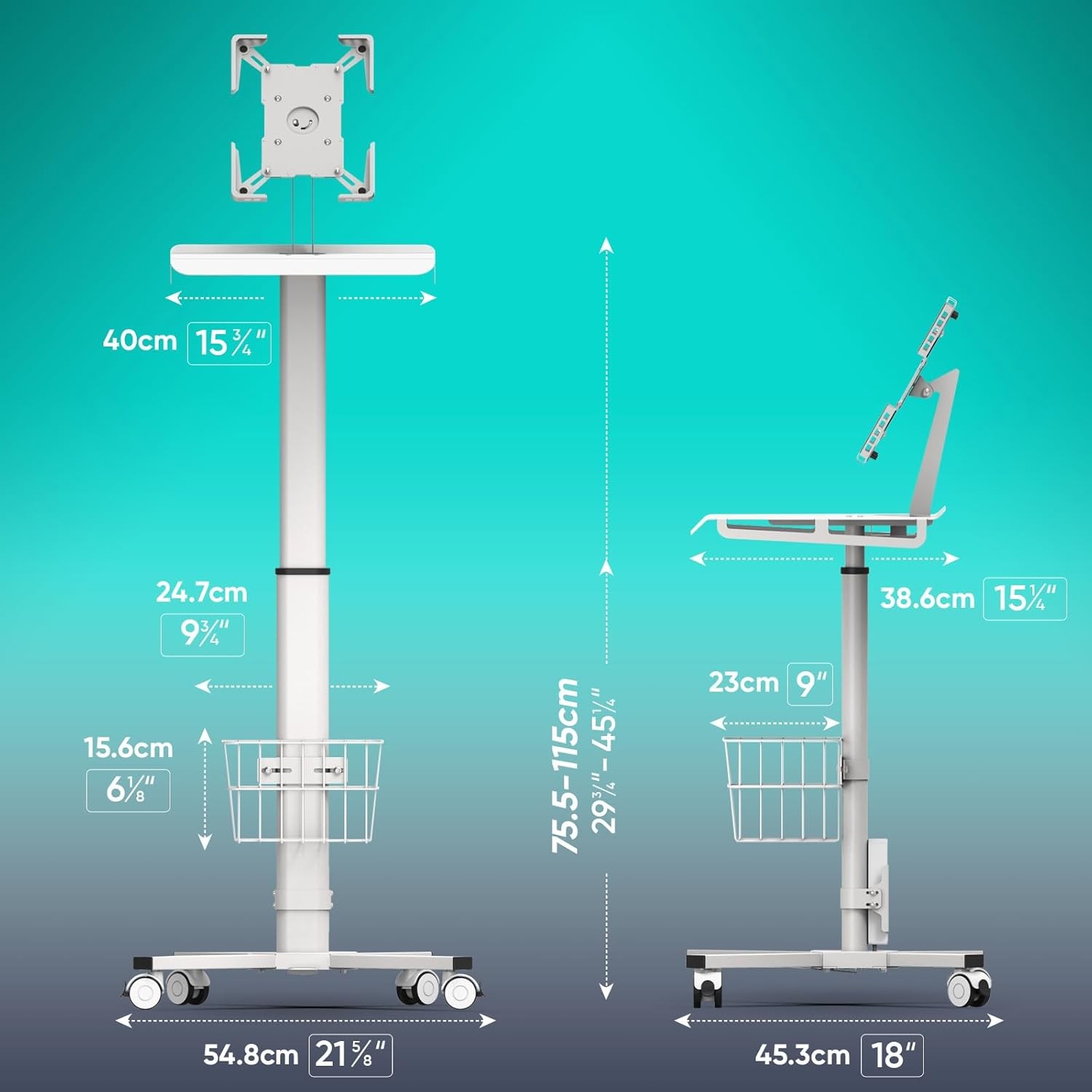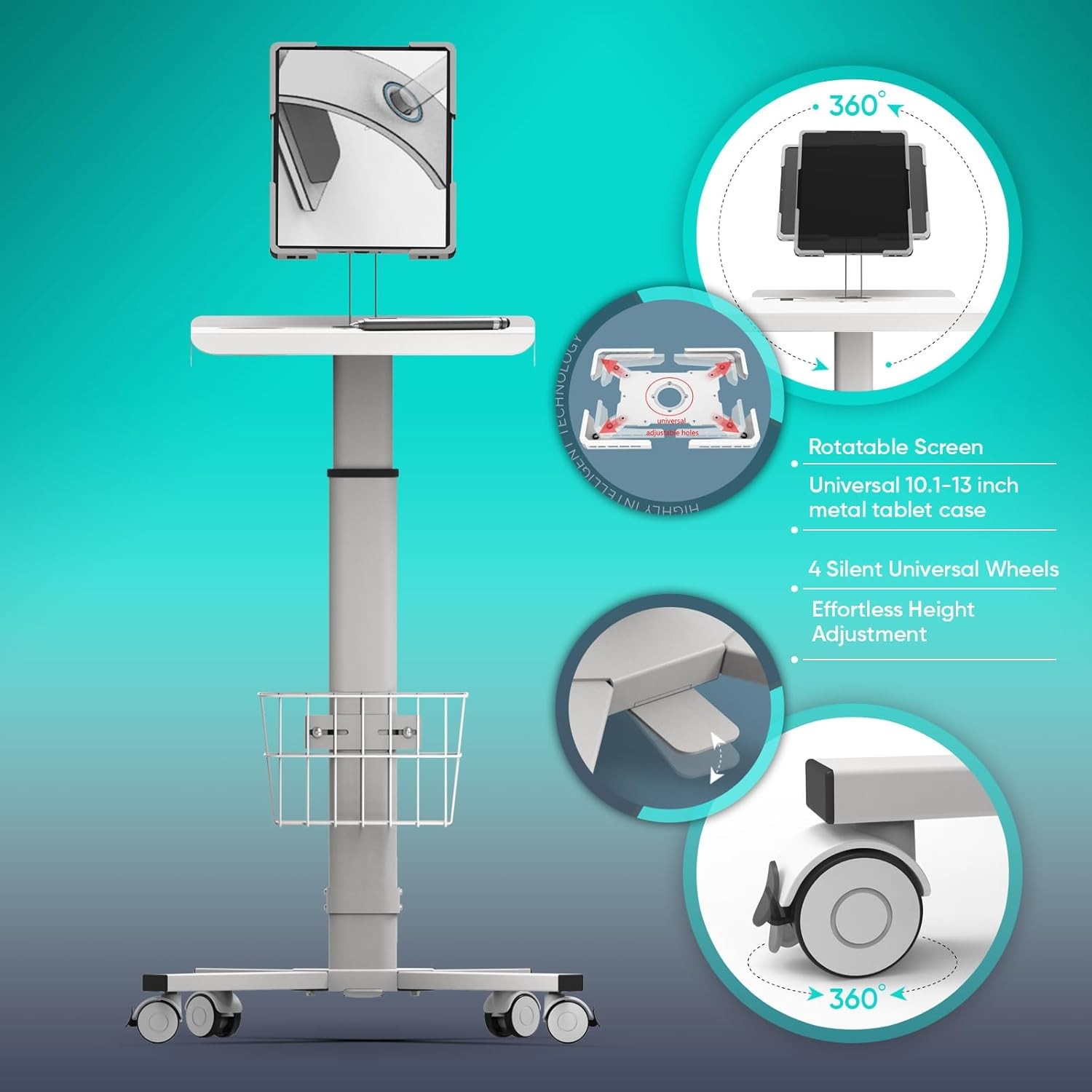 [Universal Tablet Compatibility] - Our mobile workstation compatible with any 9.7" to 13.8" iPad and other tablets, offering 360-degree rotation and adjustable tilt from 45 to 75 degrees.