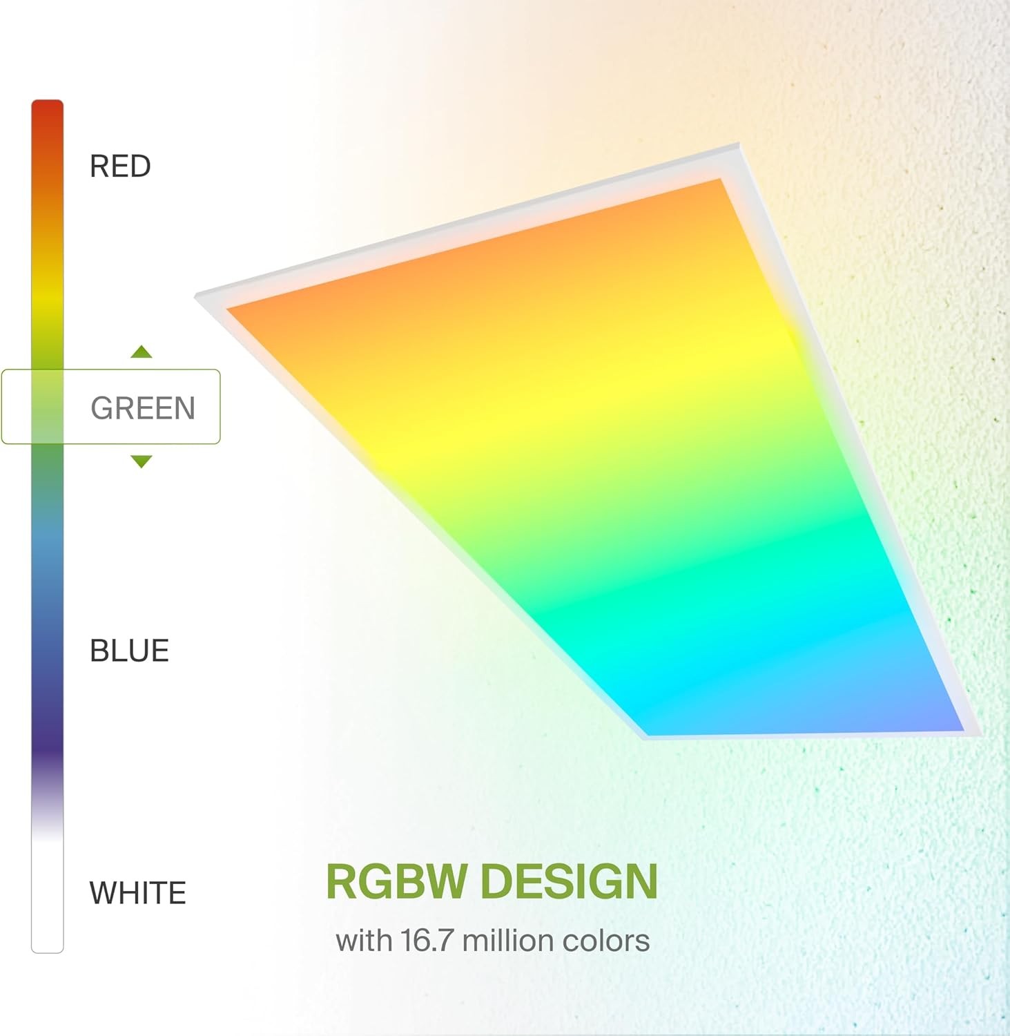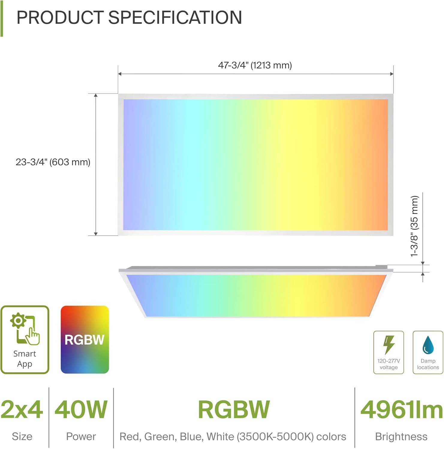 ASD 2 Pack 2x4 Smart RGBW LED Flat Panel Light - 40W UL | 4961LM 3500K 4000K 5000K Selectable Dimmable 2x4 LED Drop Ceiling Light Fixture | RGB Lights WiFi App Controlled Alexa & Google Assistant