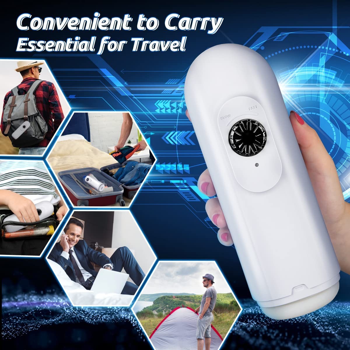 Automatic Thrusting Male Masturbator Blowjob Toy Machine with Speed Turntable Speedy Thrust for Glans Ejaculation, Hands Free Male Oral Sex Toys with Pocket Pussy Stroker