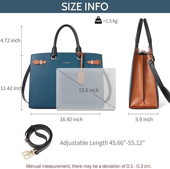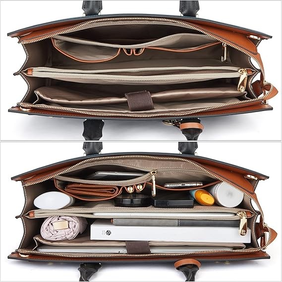 • Design Features - Handheld/Single Shoulder/Crossbody. Reinforced leather handles can save effort and avoid breaking easily. Adjustable leather straps allowed you to adjust the length you fit. The briefcase for women with a tag looks more elegant and stylish rather than clumsy. This computer bag will fetch plenty of compliments for Cost-effective, large capacity, high quality, simple-stylish and classic in style