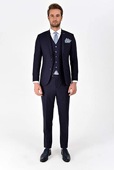 Come Voglio Men's ABUKI100220 Business Suit Vest, Dark Blue, Standard