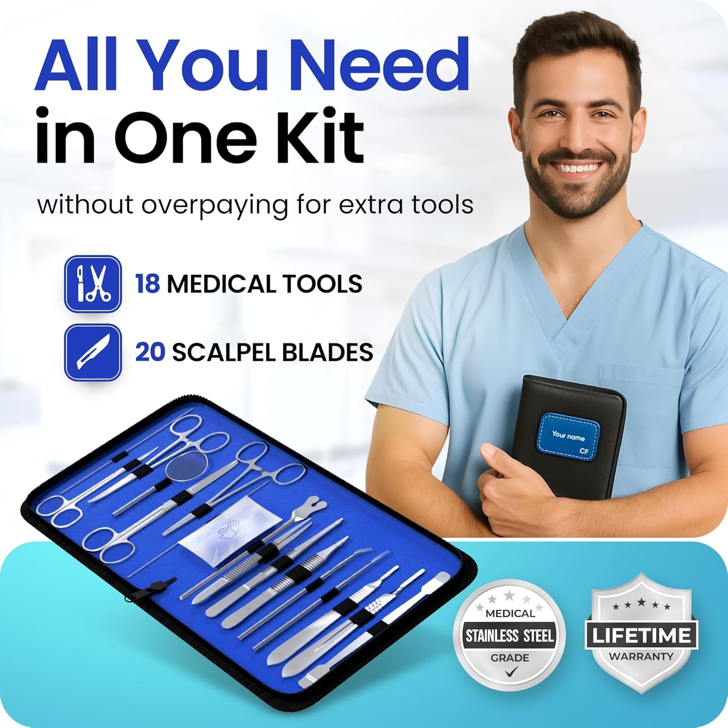Premium Stainless Steel - Unlike other kits, our tools are made from durable, rust-resistant medical-grade stainless steel. Designed for safe, effective, and long-lasting use, this dissecting kit meets the needs of medical and veterinarian students.