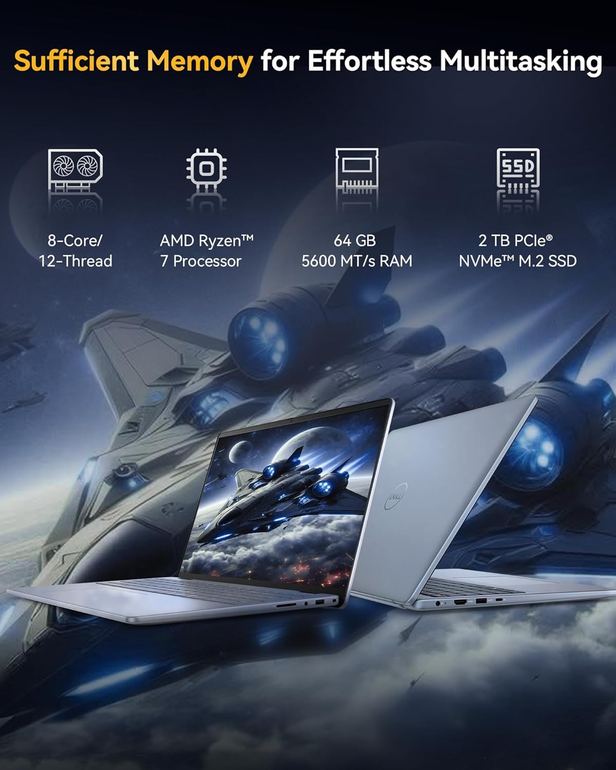 Cinematic Visuals, Pro-Level Graphics: Elevate creativity with AMD Radeon Graphics and a 16:10 WVA IPS Display (300 nits). Enjoy 18% more vertical workspace for timelines, 3D rendering, or data analytics, while the 64GB DDR5 RAM ensures smooth handling of large files and parallel processing tasks without lag.