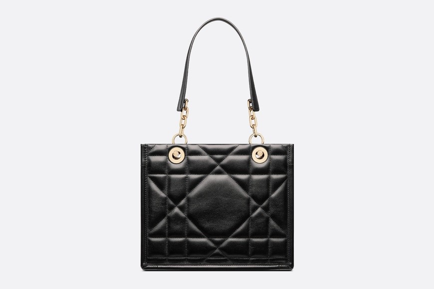 なデザインを展示した。 黒サテンの小さな牛革でできた、建築風のcannage模様は、ディオールの象徴的な