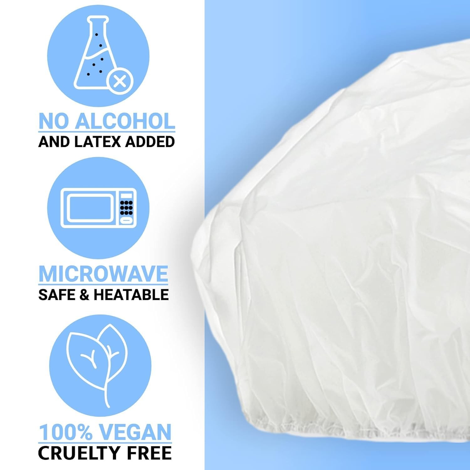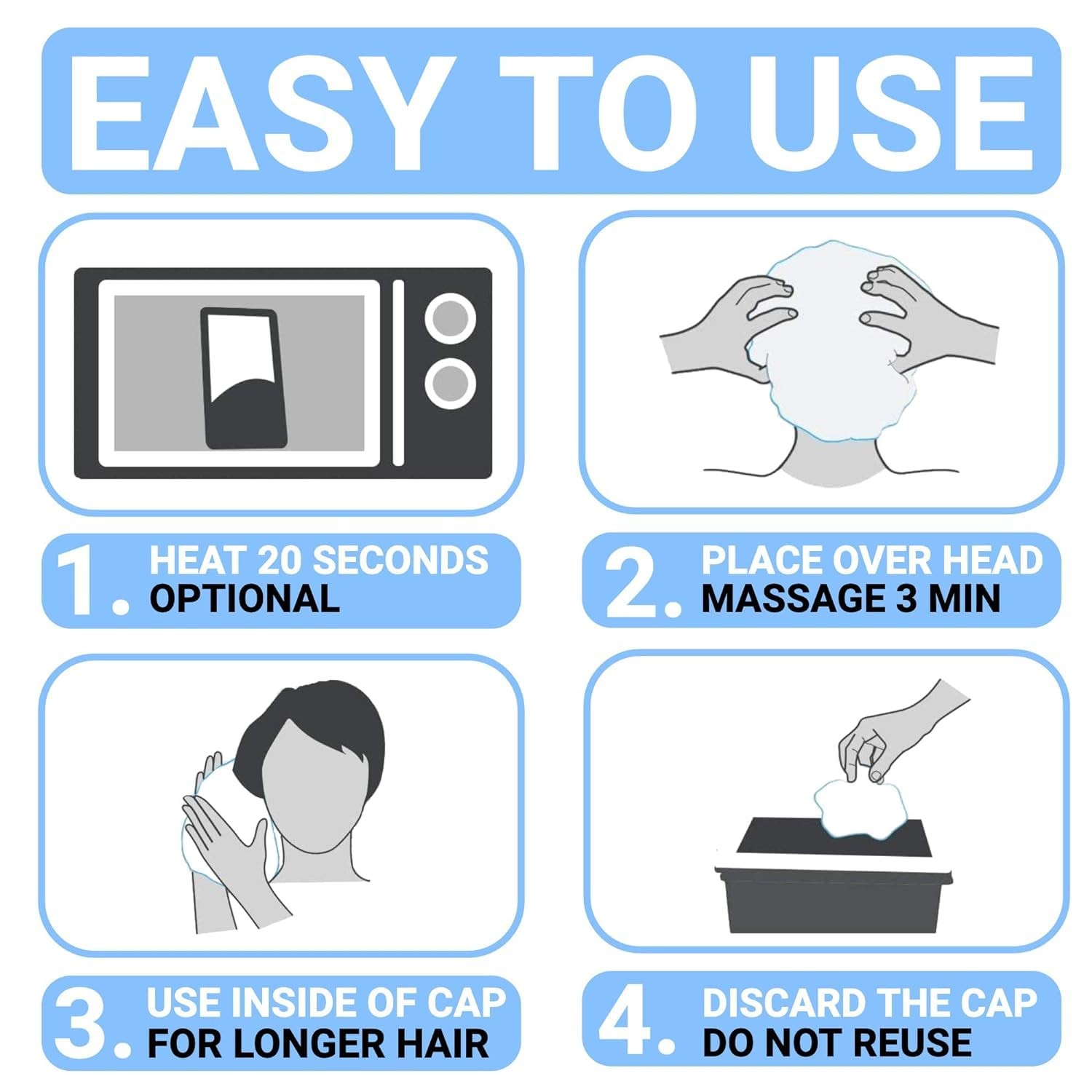 • WATERLESS AND EASY TO USE: The cap can be microwaved for 20 seconds if you want to use it warm, or straight from the bag cold. For those times when you can't get to a hot bath or shower — these caps are a close second.