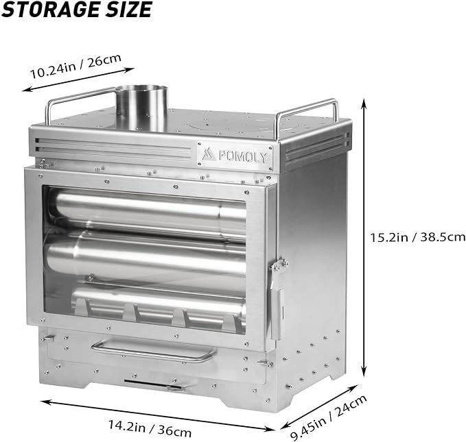 [Assembled Dimensions/Weight (excluding chimney)] 14.2 x 15.35 x 102.4 inches / 36 x 39 x 260 cm, 102.4 inches / 260 cm represents the total height from the ground to the spark arrester. 32.4 lbs / 35 lbs (approx. 14.7 kg).