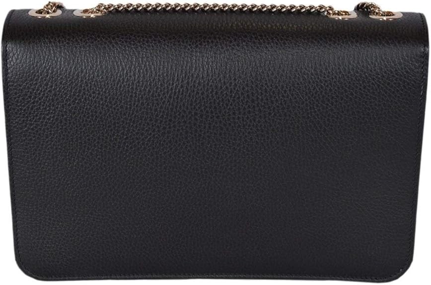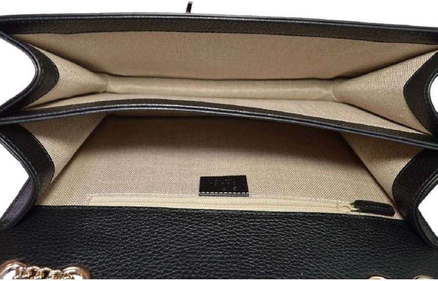 • Black Soft Calf Leather Fully Lined Two Open Compartments Gold-tone Interlocking GG Hardware Gold-tone Chain Shoulder Strap