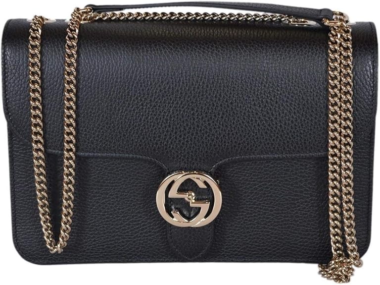 Gucci Women's Black Leather 510304 Interlocking GG Crossbody Purse Handbag New