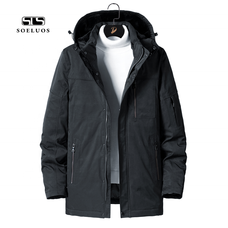 High Quality Warm Thicken Solid Hooded Parkas Casual Male Zipper Pocket coats for men winter brand