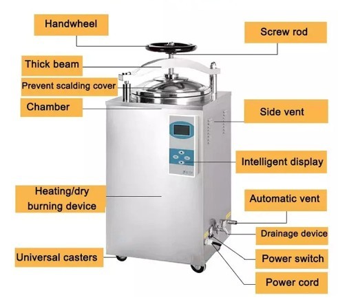 Vertical pressure steam sterilizer is a device that uses saturated steam to sterilize items. The sterilization chamber structure of this type of sterilizer is a single-layer structure, the steam supply is heated by an intrusive electric heating tube, the gas replacement method is a lower exhaust type, the sealing structure type is a beam structure, and the control method is microcomputer control.