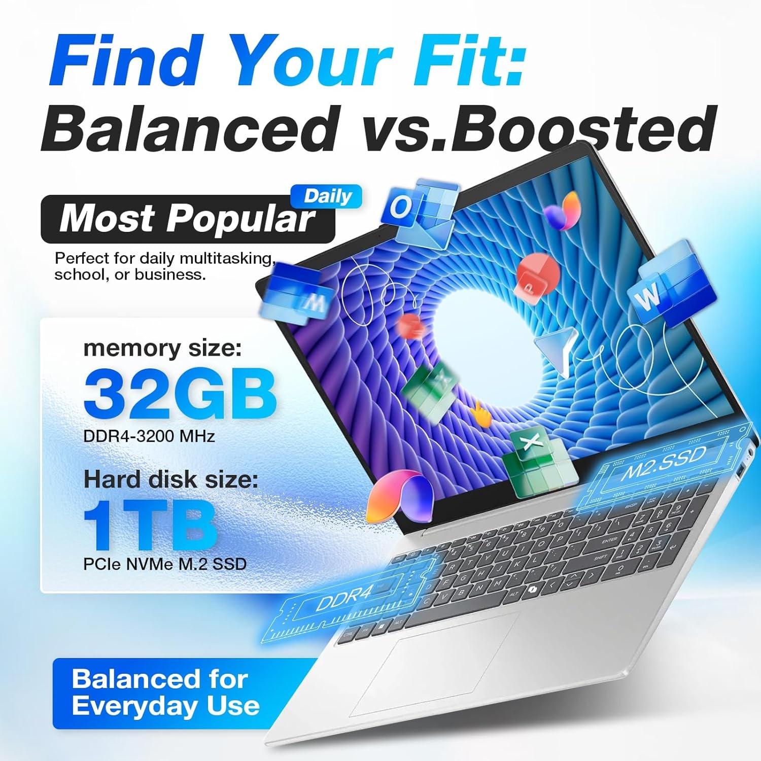 • ➤【BALANCED SPEED & STORAGE FOR DAILY TASKS】Powered by 32GB RAM and 1TB SSD, this model ensures smooth multitasking and fast file access—ideal for schoolwork, content viewing, and daily productivity.