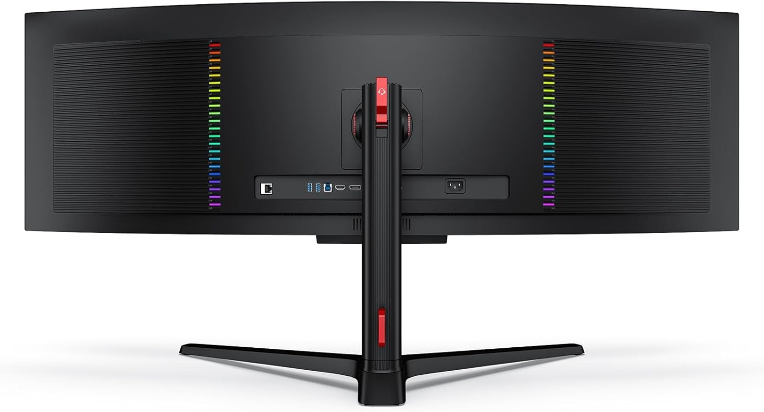 【90W USB Type C, DP and HDMI Ports】49Q1R ultra widescreen pc gaming curved OLED monitor delivers powerful USB C 90W power delivery connectivity and have richful interfaces: 2 x HDMI 2.1, 1 x USB C 90W, 1 x HDMI 1.4, 2 x USB A, 1 x USB-B, 1 x RJ45, 1 x 3.5MM Audio Jack, you can directly connect your USB C devices such as Laptop, Mac, Phones, Tablets, Gaming Console( like Switch, PS5/4/3, XBOX Series etc) . It's much more convenient