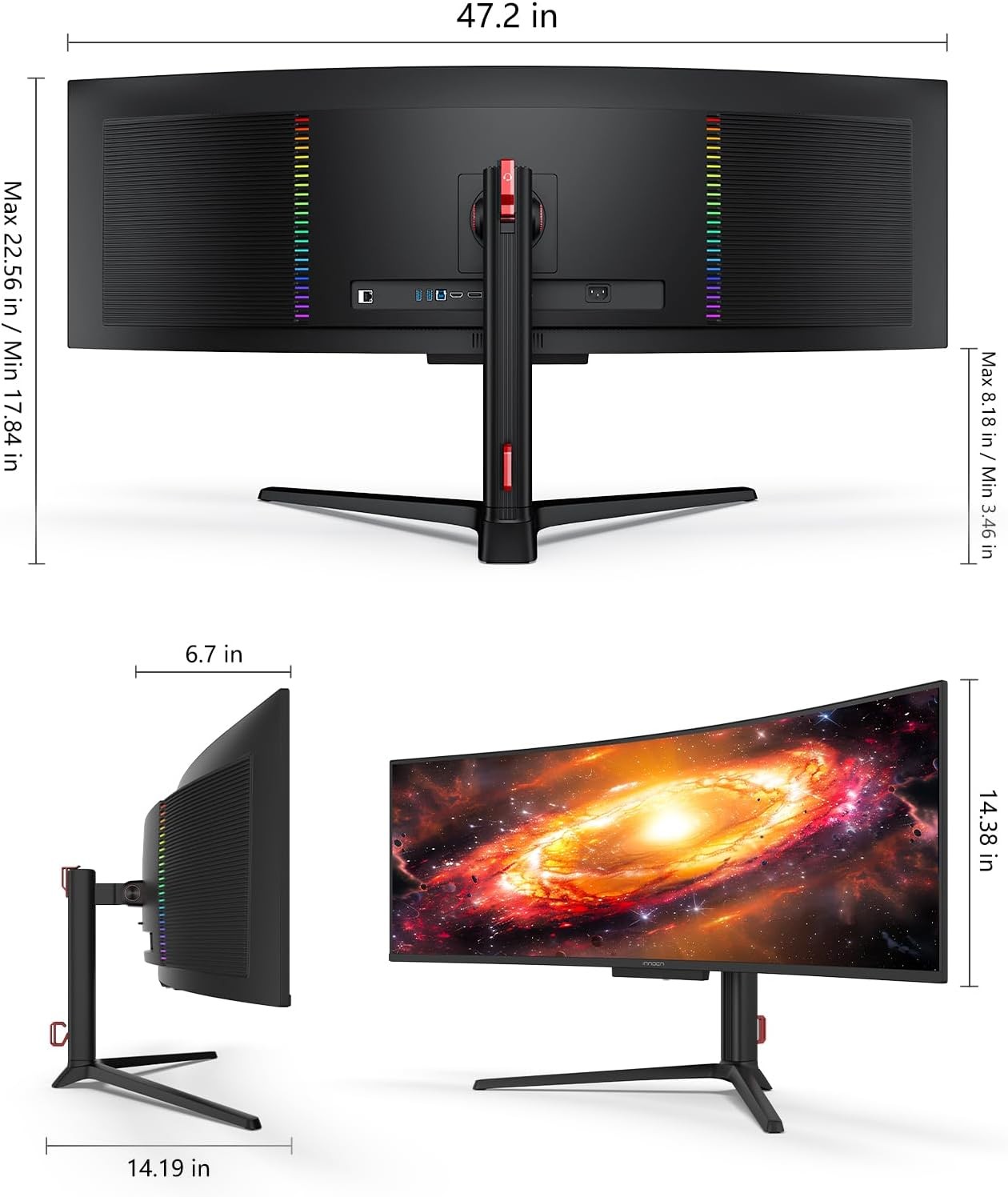 【49 Inch Curved Monitor with QD-OLED Technology】Premium OLED Panel delivers 5k2k 5120*1440 resolution up to 144hz monitor for content creation and gaming, 32:9 aspect ratio bring more wider visual than ordinary 16:9 monitor, capture game details more clearly for quick response. Tilt / Swivel / Height Adjustable meet different viewing visions
