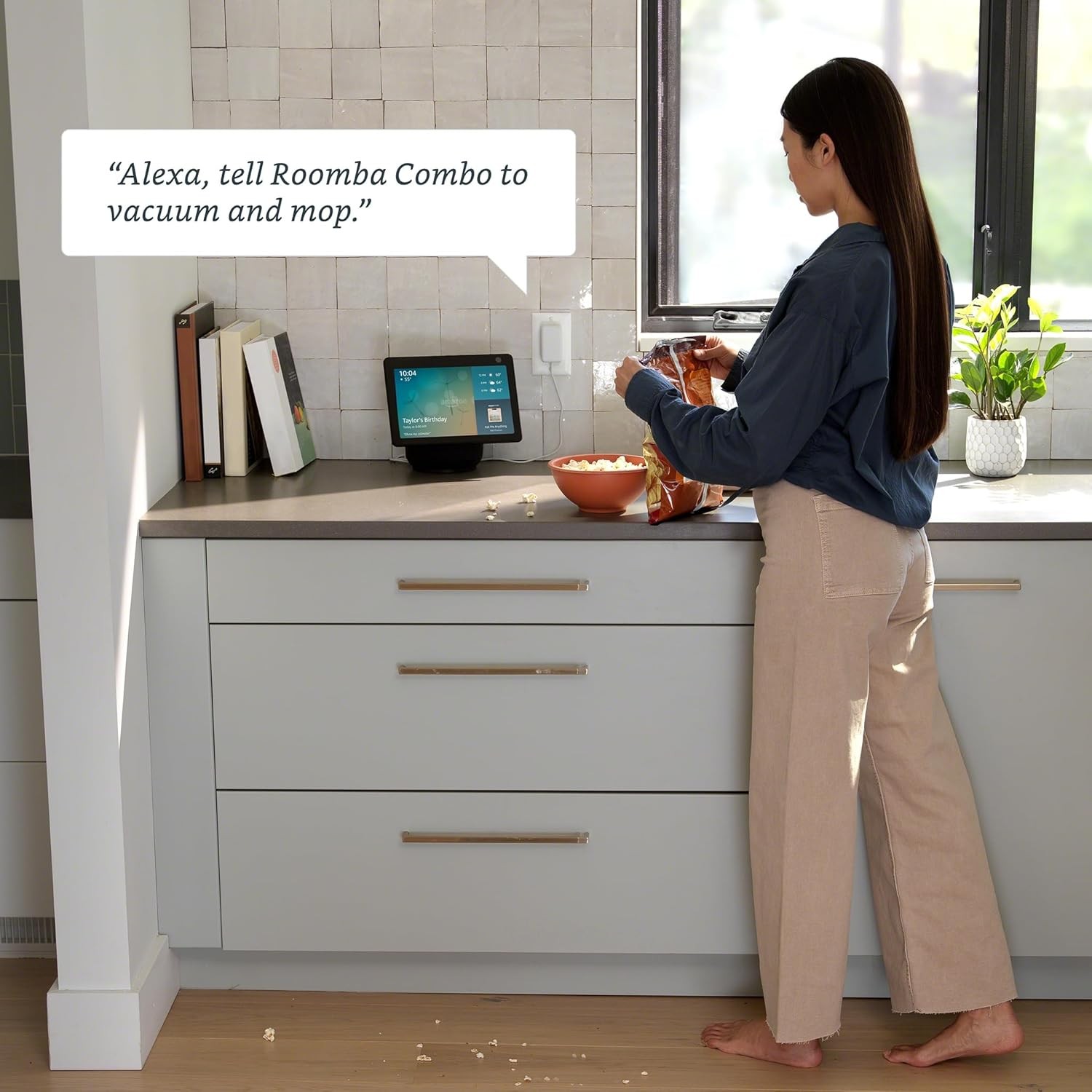 • CLEAN YOUR WAY MORE EFFICIENTLY. Fill the Roomba Combo Bin’s tank with a compatible cleaning solution* of your choice or just water and instantly transform your robot into a vacuuming and wet mopping robot that leaves your home fresh and clean.