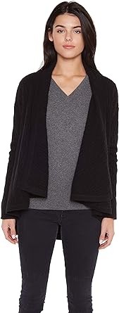 JENNIE LIU Women's 100% Pure Cashmere 4-Layer Cable-Knit Draped Front Cardigan .,.