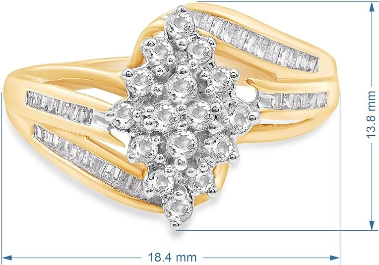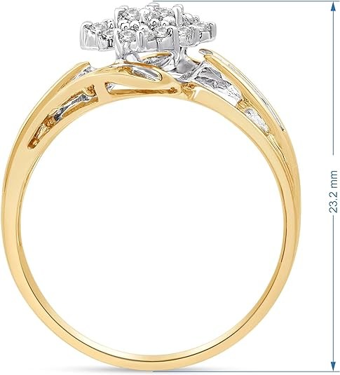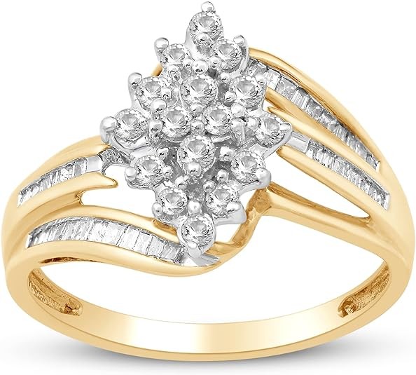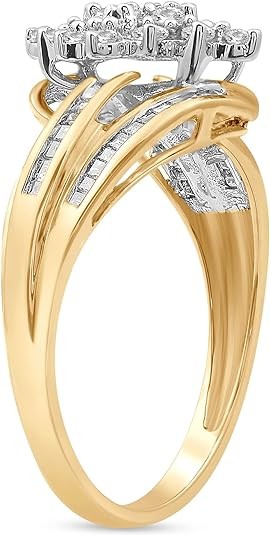 Jewelili 1/2 cttw Baguette Diamond Cluster Ring in 10k Yellow Gold ';