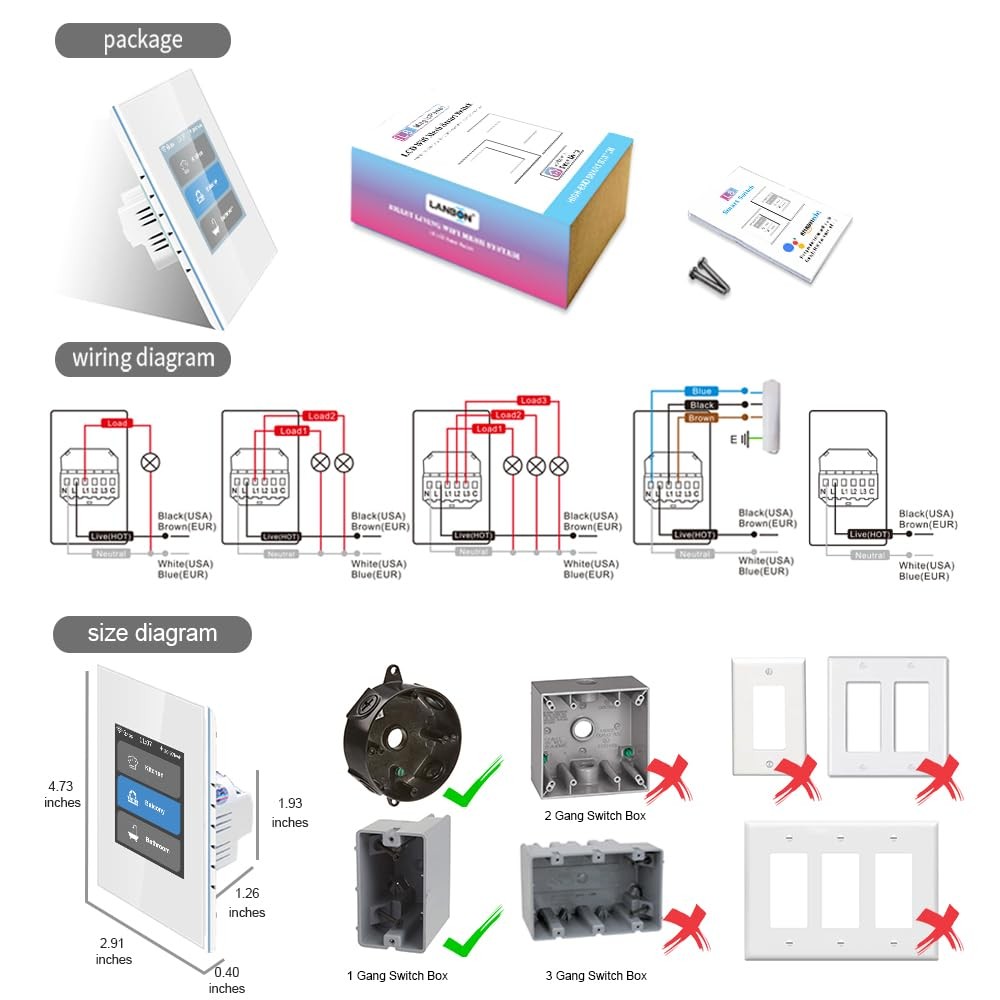 ⚠️⚠️⚠️【Tips】Before you buy, please be sure these things: 1️⃣Neutral wire required; 2️⃣ONLY FITS in regular single pole gang box; 3️⃣Use Smart Living app works with iOS and Android system(not support smart life/tuya/home kit APP); 4️⃣2.4GHz Wi-Fi when connection. ?Easy Install and Use: No need to understand complex switch wiring or master vs auxiliary switch configuration.