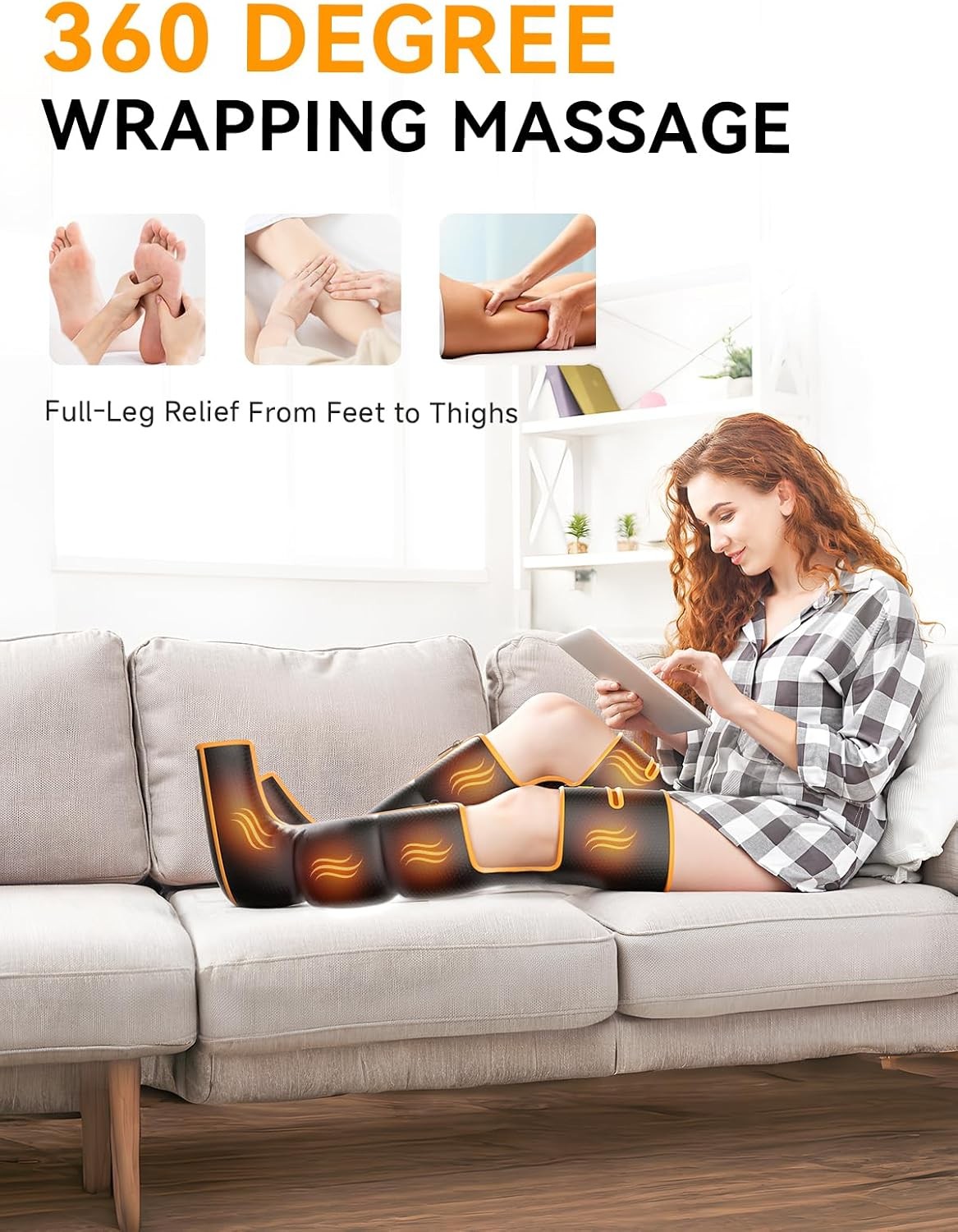 • Customized Massage Experience: Choose from three pressure intensities and heat therapy for a tailored massage. The leg massager simulates real kneading and pressing, delivering continuous pressure from eight air chambers from the feet up to the legs