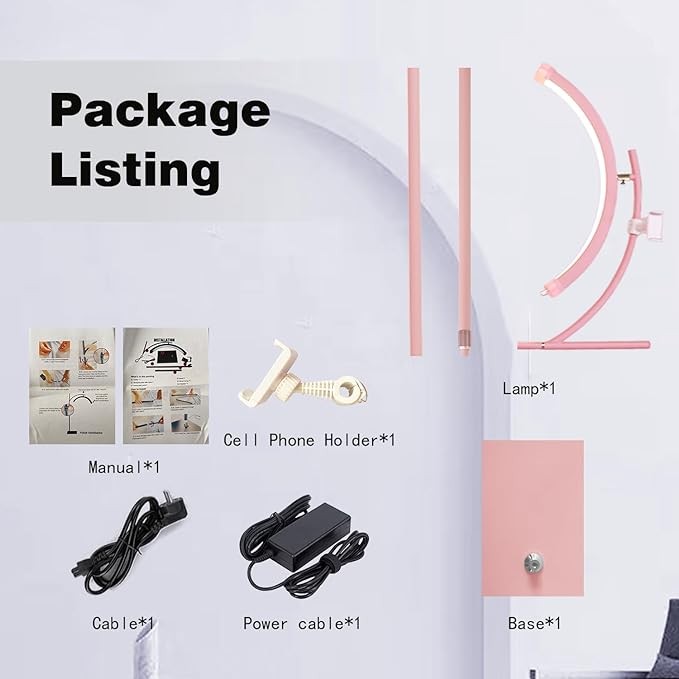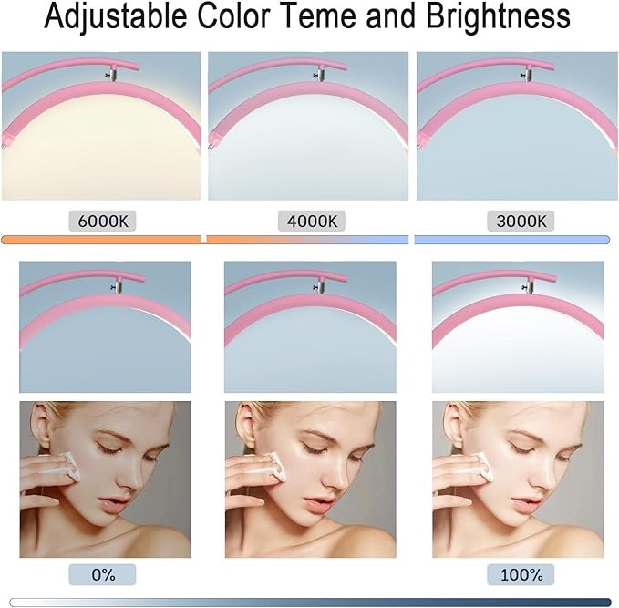 Floor Half Moon Ring Lash Lamp For Eyelash Extension Beautician Light Adjustable Brightness Height Lamp Tattoo Artist Nail Tech R Pink