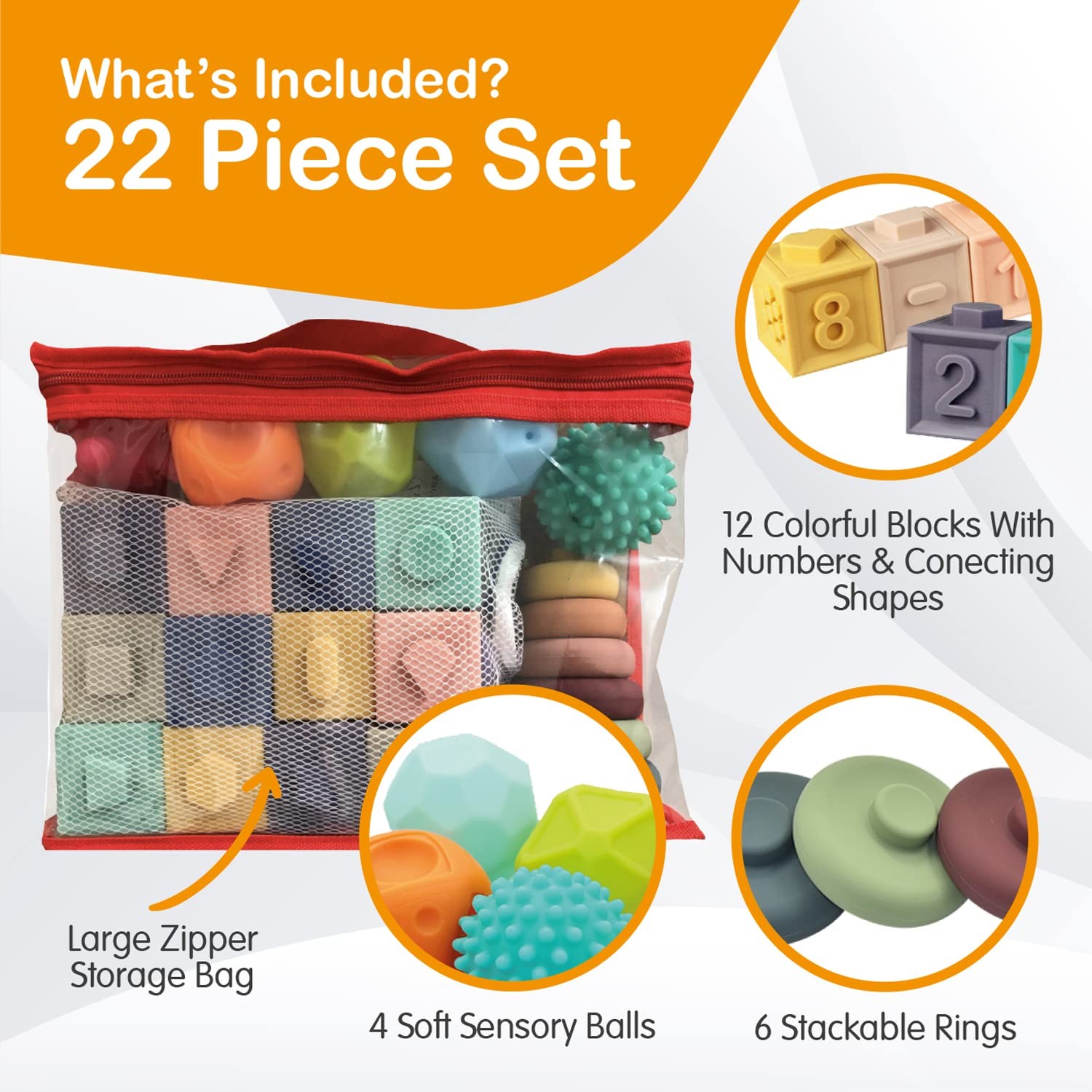 Montessori Toys for Babies | 3 in 1 Soft Baby Toys Bundle | Baby Toys 6 to 12 Months | Sensory Toys for Toddlers 1-3 | Teething Toys for Babies 0-6 Months | Learning Toys