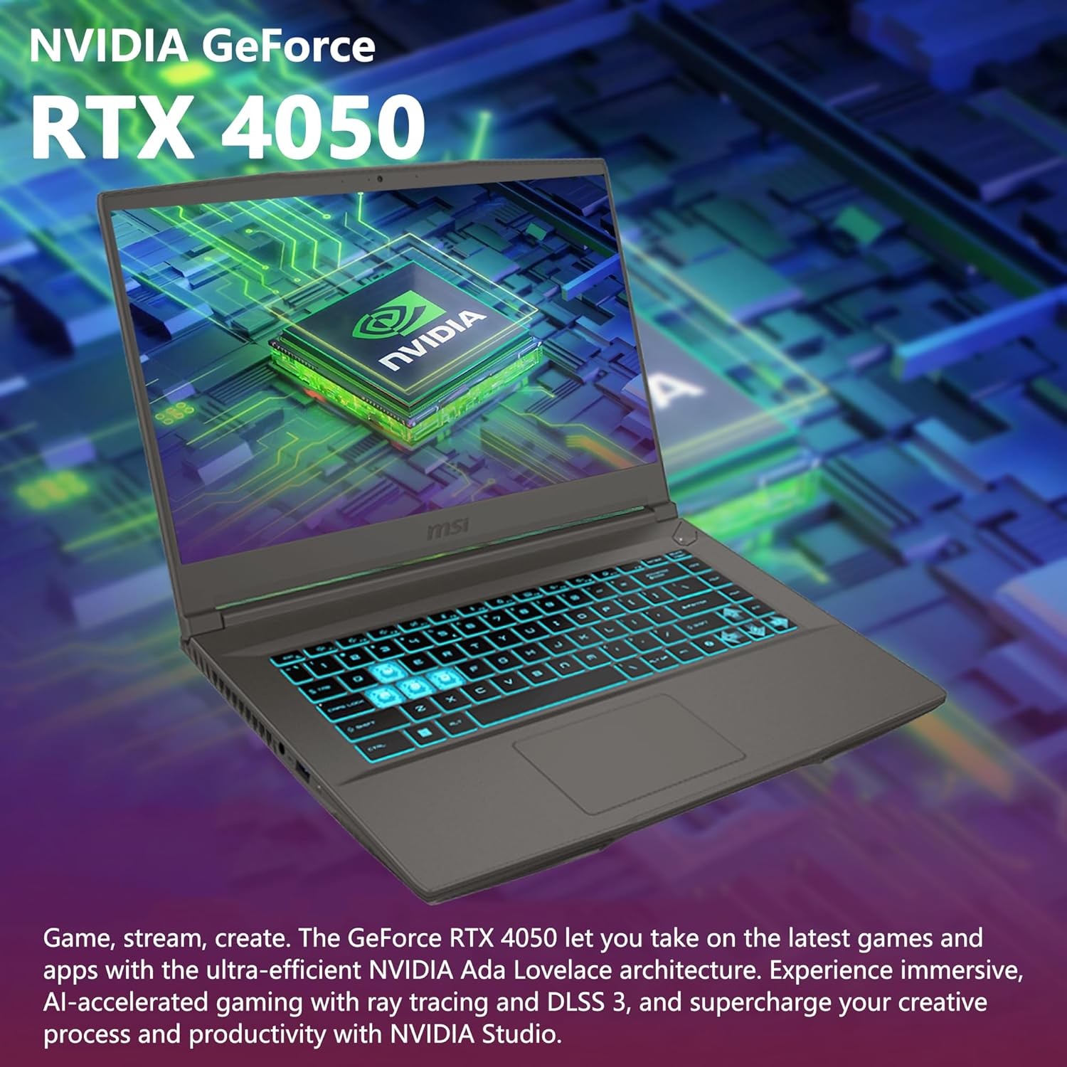 msi Thin 15 Gaming Laptop | 15.6" FHD IPS 144Hz | Intel 8-Core i5-13420H (> i7-12650H) | 16GB RAM 1TB SSD | GeForce RTX 4050 6GB | USB-C Backlit Keyboard Wi-Fi 6E Win11 w/DLCA Accessory