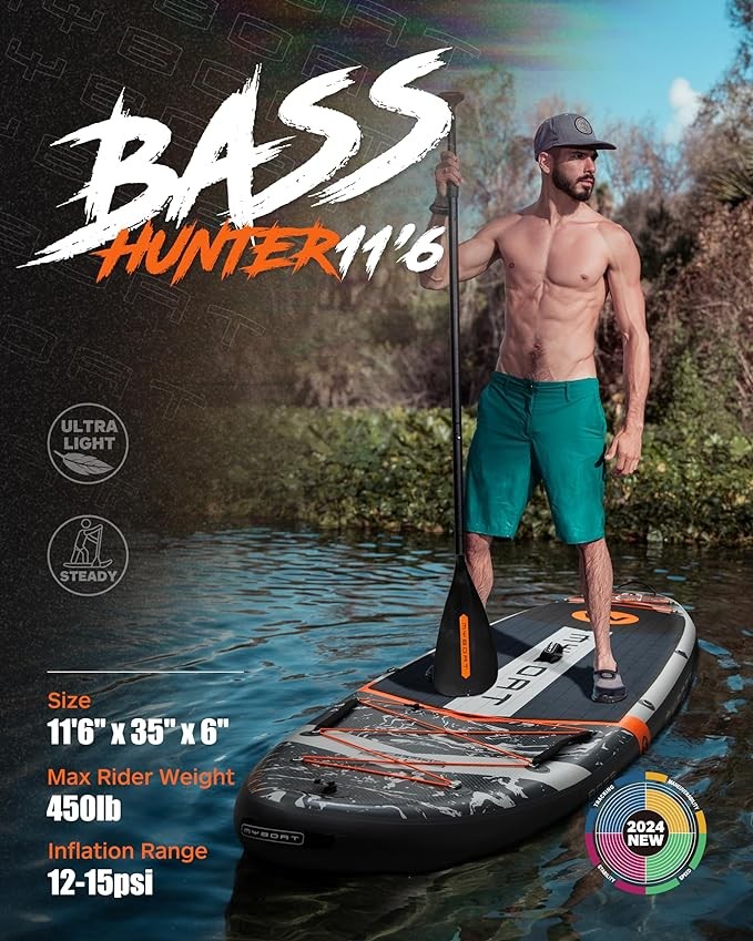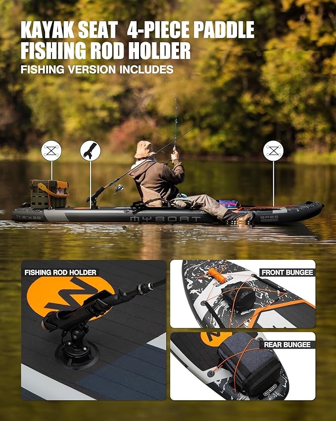 【Fishing Rod Mount and Kayak Mount】MYBOAT BASS HUNTER paddle board upgrade accessory, specially designed for fishing. You can easily place your fishing rod on the stand. When you want to take a break, you can use the kayak seat and sit on the inflatable paddle board.