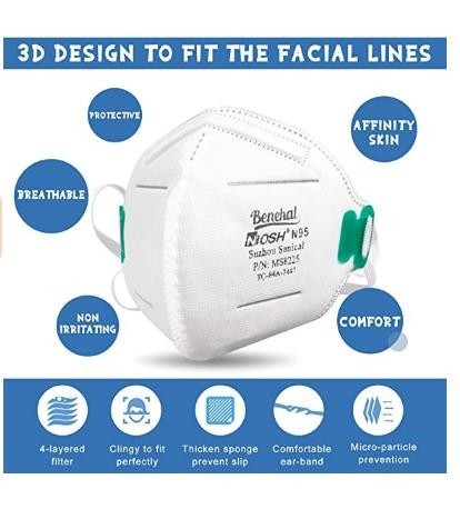 N95 mask, NIOSH certified N95 disposable respirator safety respirator, filtering efficiency of 95%, adjustable comfort protection.