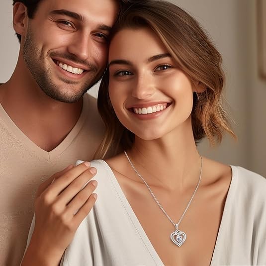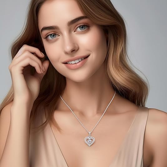 925 Sterling Silver Fine Jewelry, Pendant Heart Necklace Birthday Anniversary Christmas Gift for Women Wife Mom Girlfriend Women