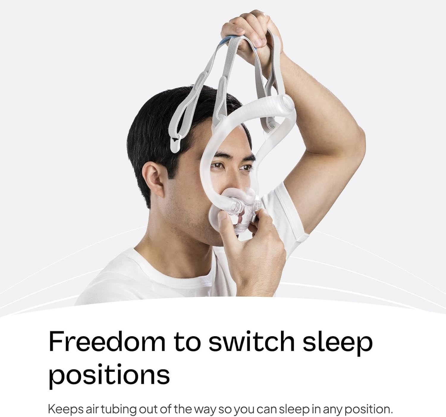 CPAP Accessories with Innovative Design: The ResMed AirFit F30i frame system includes a top-of-head tube connection that keeps air tubing out of the way for more freedom