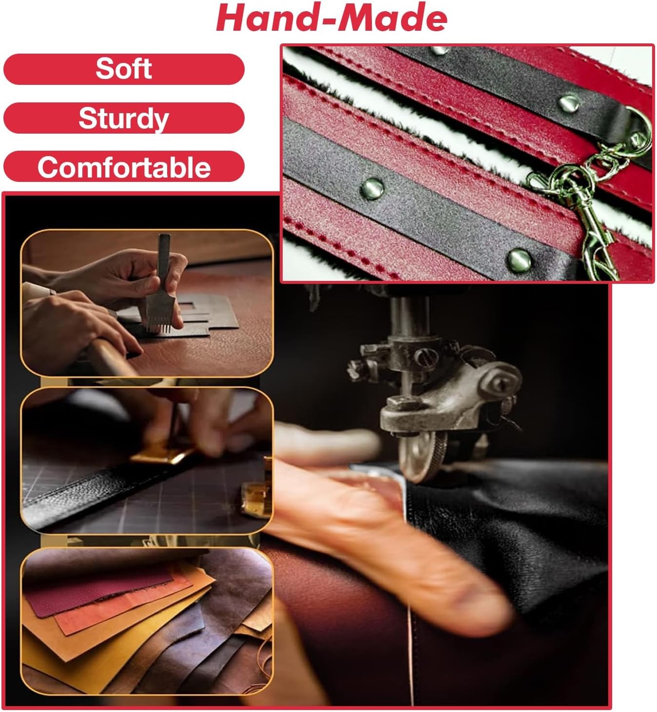 High-end PU Leather Material: Unlike other bdsm set rough and cheap leather or nylon materials, the outer leather material of our bondage cuffs is sturdy and durable, lined with very soft, plush material.
