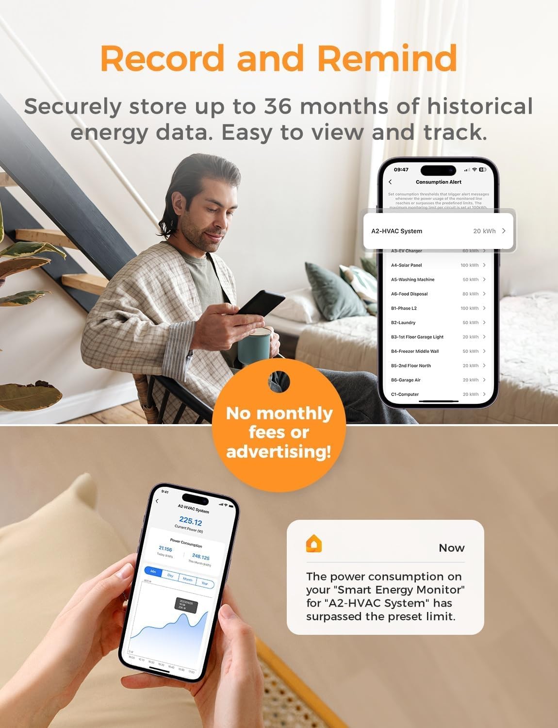 • Smart Consumption Alerts: You can set personalized usage targets for each circuit. Once the system detects an unusual energy spike—such as a sudden increase in power consumption by an appliance that exceeds the normal range—you will immediately receive a detailed alert notification. This allows you to take prompt action, such as checking if there is a malfunction with the device or adjusting your usage habits, thereby optimizing appliance usage across different times of the day.