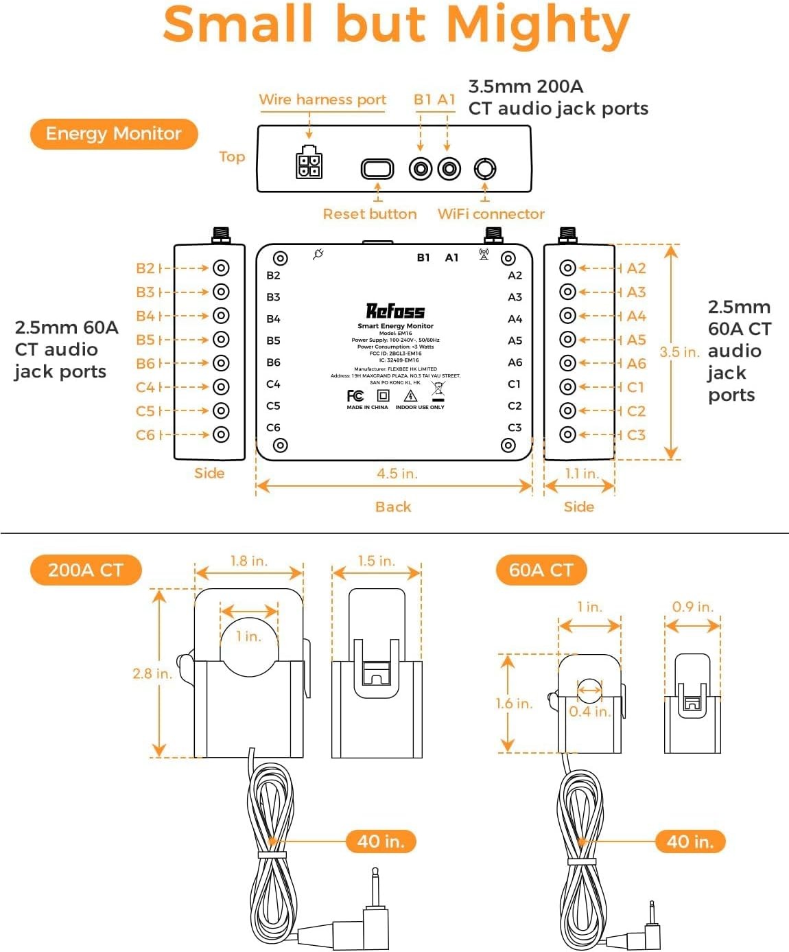 • Smart Home Energy Monitor: Supports 2 main circuit sensors (up to 200A each) and 16 branch circuit sensors (up to 60A each)—perfect for heavy-duty electric appliances such as heating pump, pool pump, dryer or air conditioners. Compatible with single-phase 2-wire systems, single-split phase 3-wire systems, and 3-phase 4-wire Wye systems with earthed (TN or TT) neutral (no Delta). Easily installs in most home circuit panels and includes a 2-year warranty. Attention: Handle the current transformers with care to avoid damage.