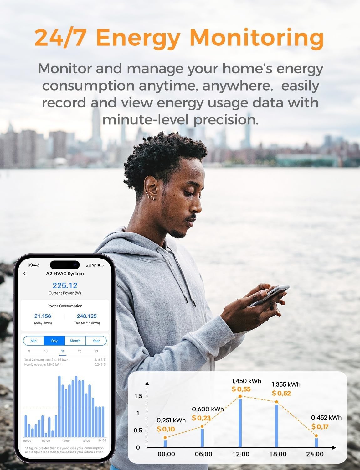 • Comprehensive Energy Data: The power monitor provides 98% accuracy and stores up to 3 years of detailed electricity usage data. With clear minute, hour, day, month, and year consumption and cost charts, you can easily understand your energy use. Ideal for homeowners adjusting appliance usage to save on bills or businesses tracking long-term energy savings and emission reductions. Historical data can also be exported for further analysis, making every electricity expense transparent.