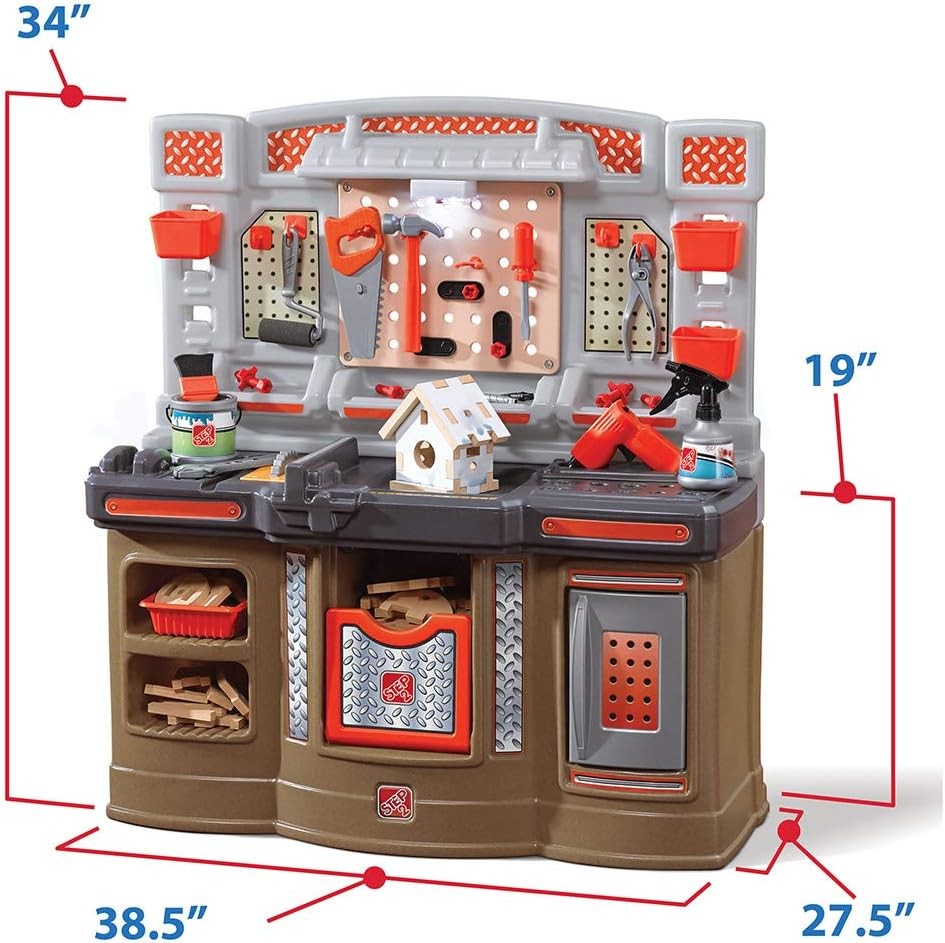 Step2 Big Builders Pro Kids Workbench, Indoor/Outdoor Tool Bench for Children, Interactive Play with Sounds, Made of Durable Plastic, Includes 45 Piece Toy Accessories, For Toddlers 3+ Years Old