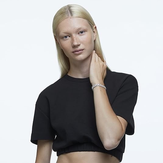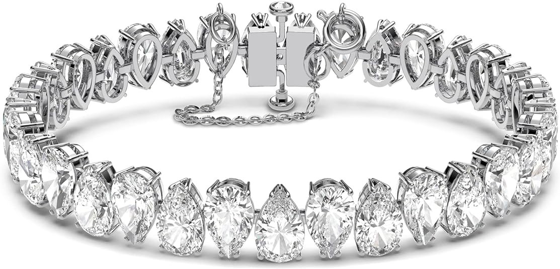 A world of wonder awaits: this bracelet defines elegance for everyday and formal occasions, featuring sparkling pear-cut white crystal on a rhodium-finished strap; creating a stylish day or night look.