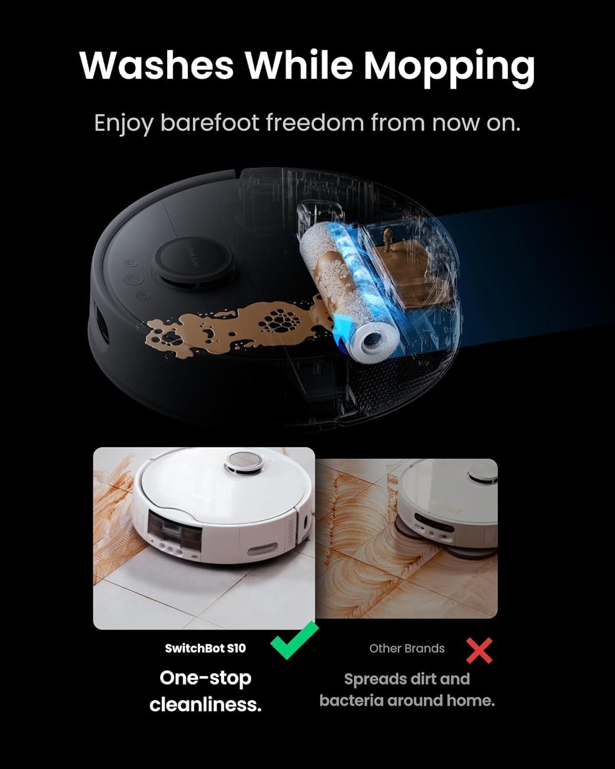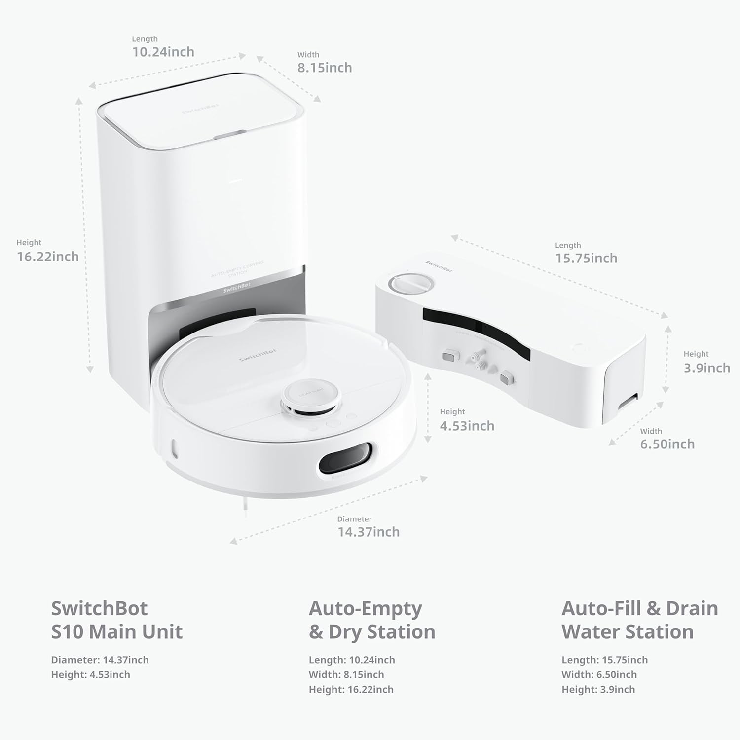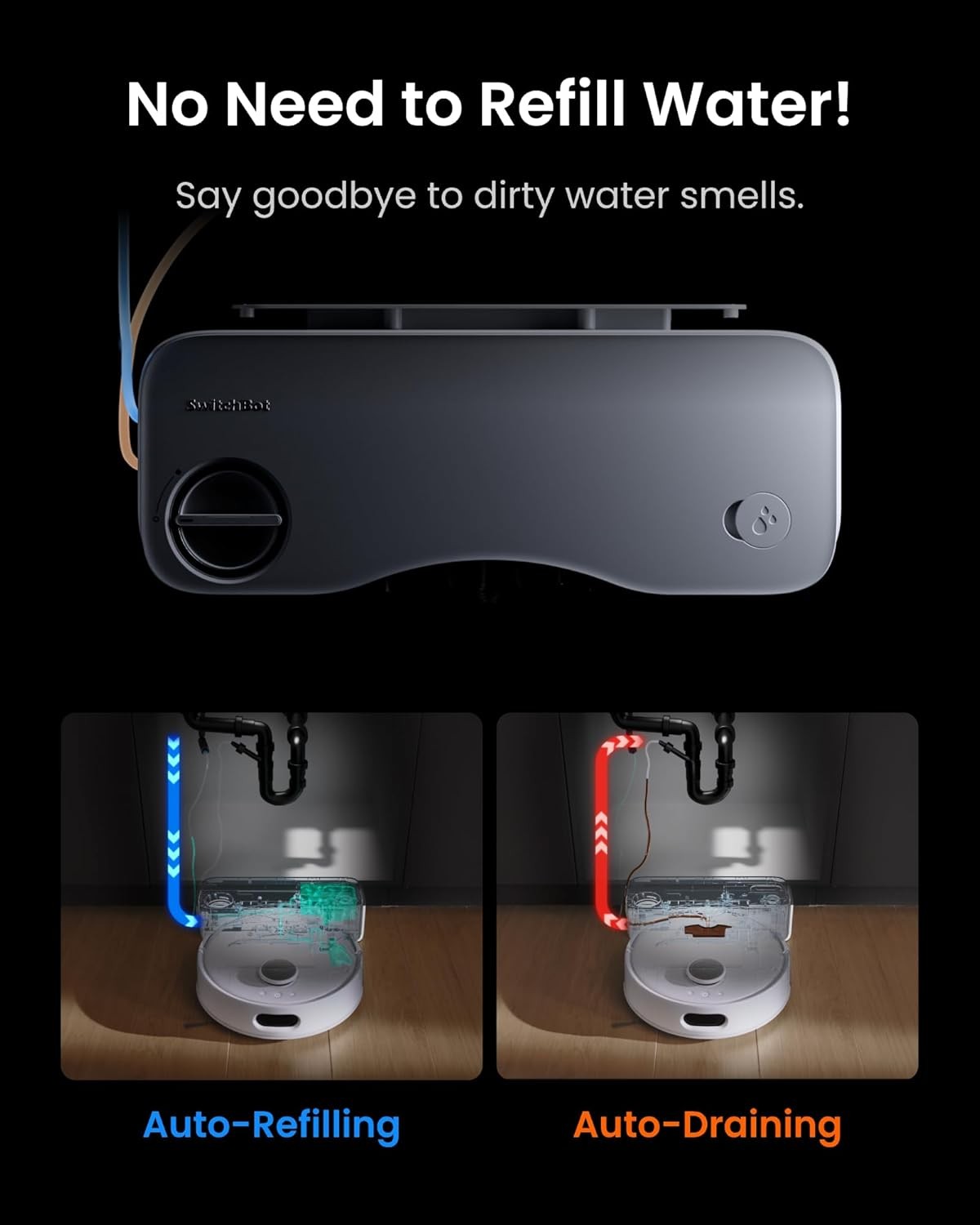 100% Automated Cleaning: SwitchBot S10 robot vacuum and mop combo uses a Dual Station Design to make cleaning truly hands-free. It features a never before seen Water Station that directly connects to household plumbing systems, eliminating the need for manual water refilling or draining. Once it completes a cleaning schedule, it returns to the self-empty station for hot air drying and dust collection for up to 90 days. Simply set it and forget it!