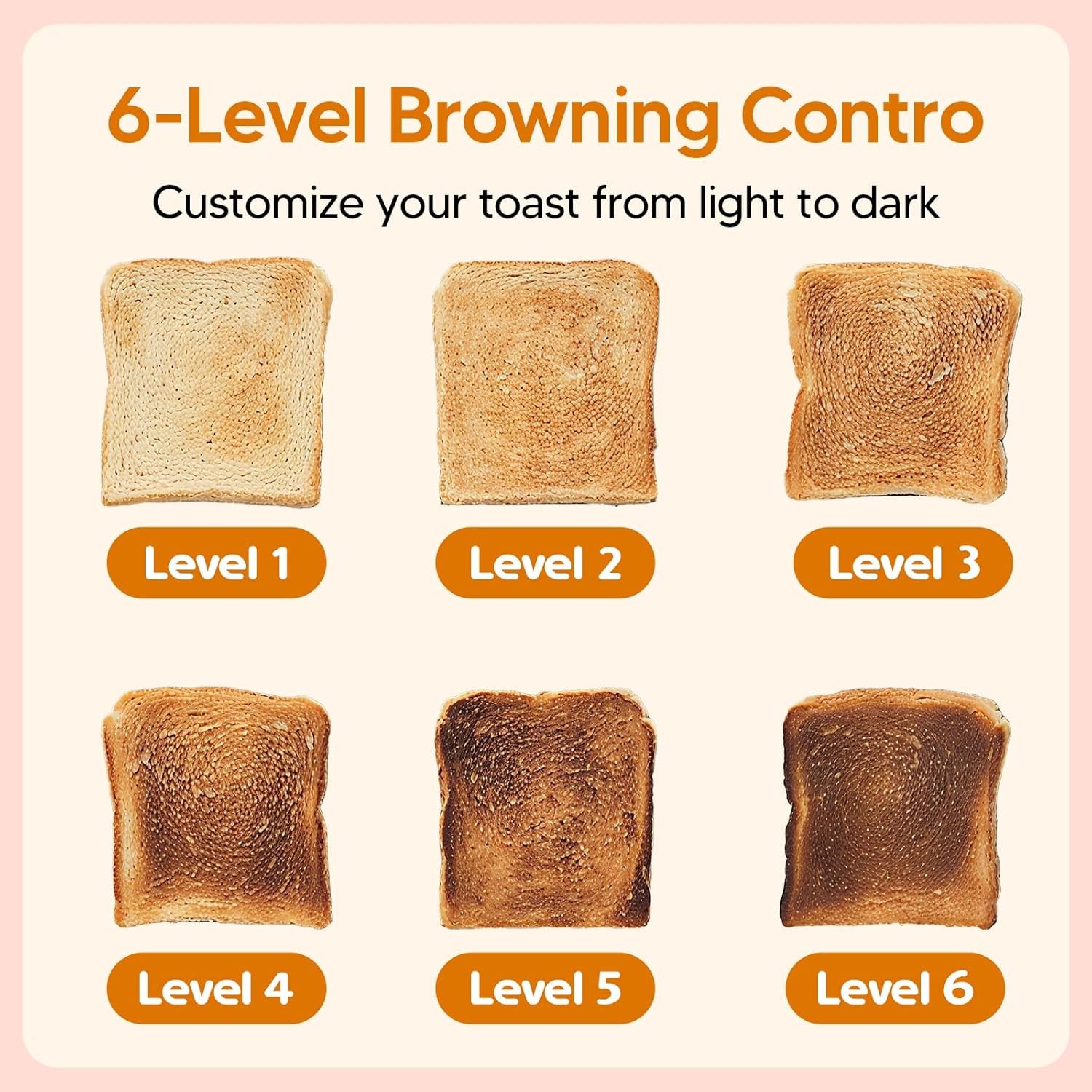• 【6 Browning Levels with 900W Power】Enjoy perfect toast every time! This toaster 2 slice delivers even crisping across 6 browning levels with 900W power. Whether it's white toast, multigrain, waffles, or bagels, this 2 slice toaster creates golden, consistent results for the whole family.