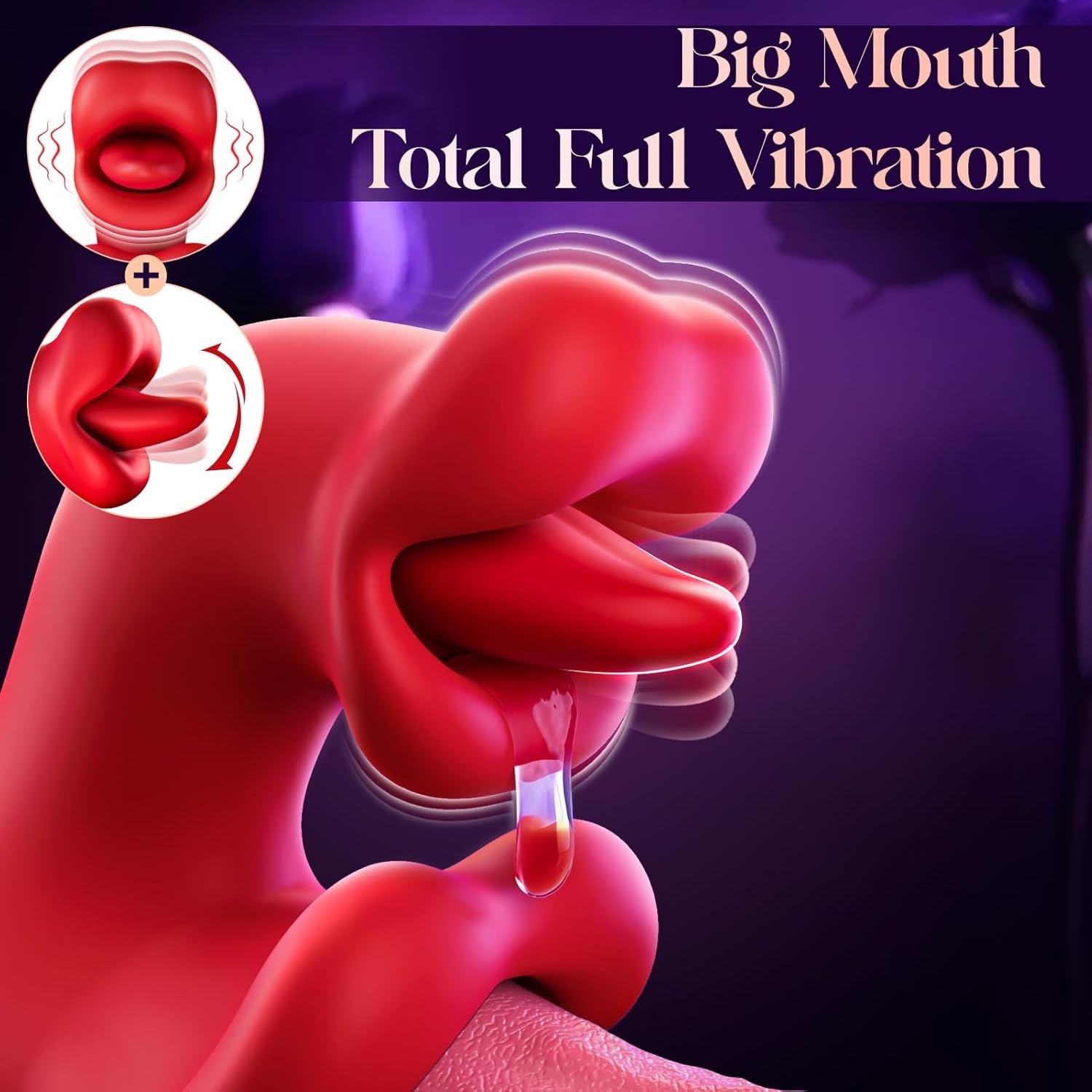 【9 Licking & Vibration Modes 】 The big mouth offers 9 licking & vibration modes with whole vibrating, which delivers intense external stimulation. This tongue sex toy delivers double the pleasure—ideal as a clit vibrator, sucking vibrator, rose toy or rabbit sex toy. Whether womens crave teasing or deep vibrations, this vibrator sex toy adapts to every mood.