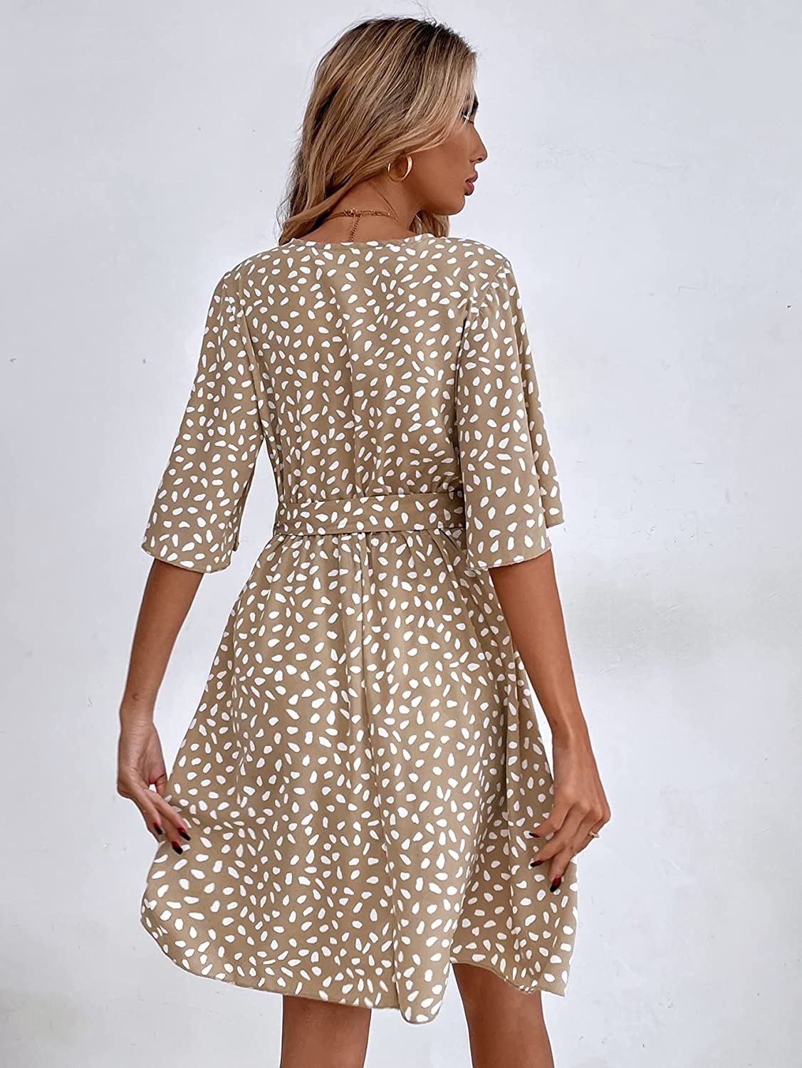 Women's Short Sleeve V Neck All Over Print High Waist A Line Summer Short Dress1